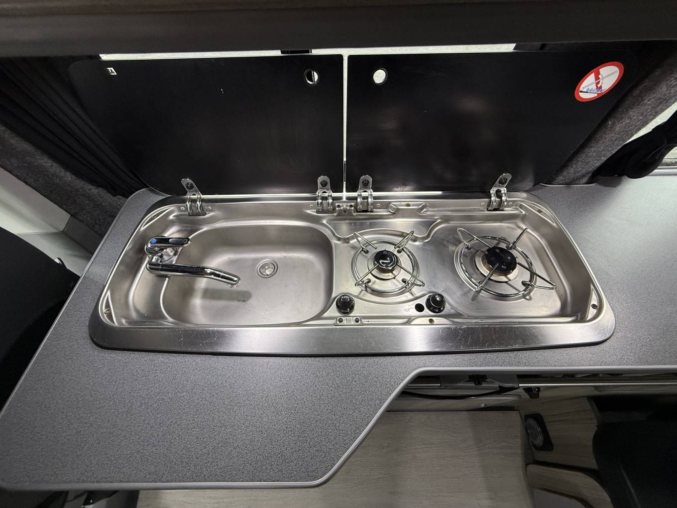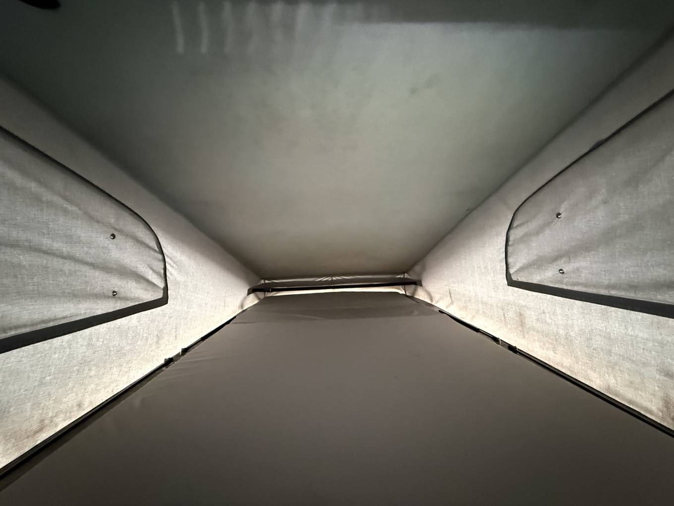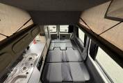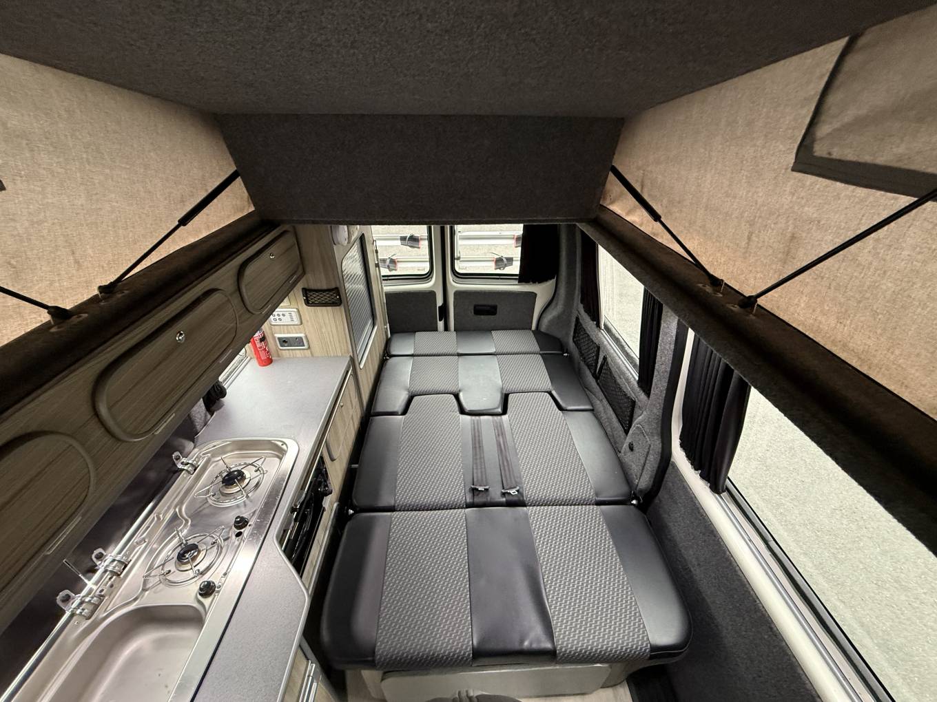 The pop-top roof provides additional sleeping space with a cosy double bed and mattress, making it ideal for couples or small families.