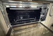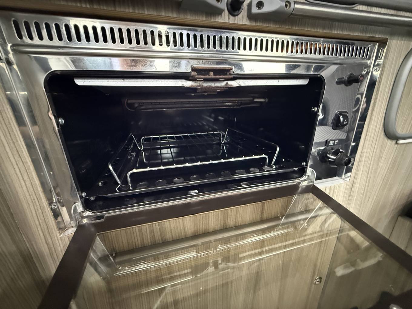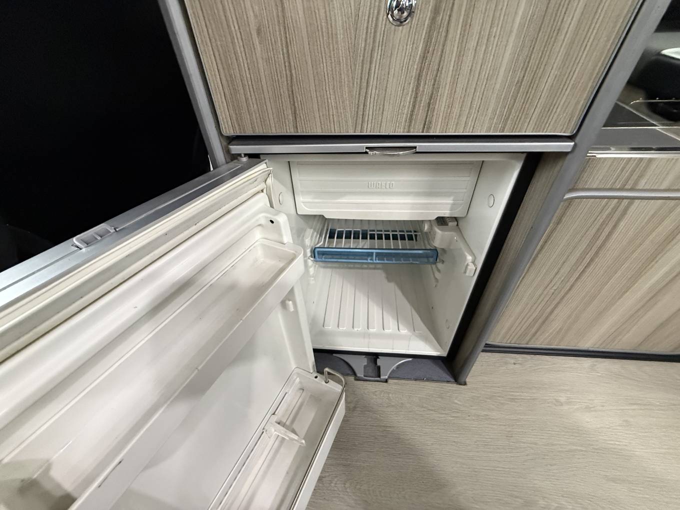 Inside, it’s thoughtfully equipped for comfortable adventures, featuring a 2-burner gas hob with grill, hand wash basin, 12V fridge, and a convenient double passenger swivel seat to maximise living space. You’ll also benefit from Truma blown air heating, a porta potty, and a comfortable rock and roll bed for restful nights.