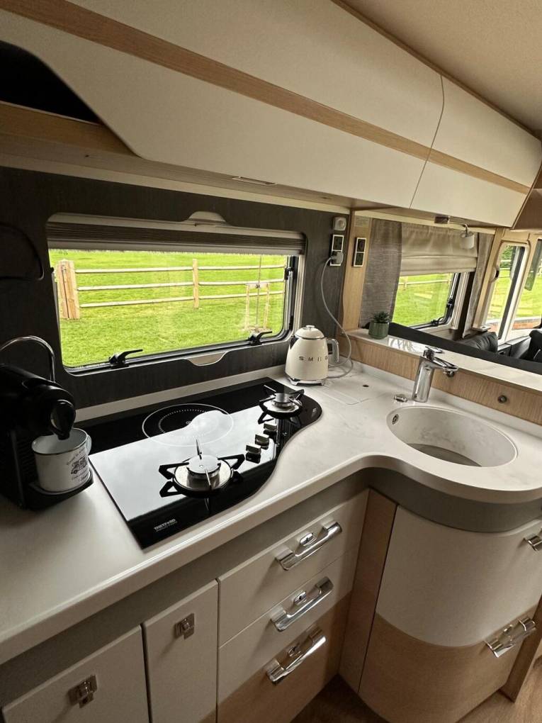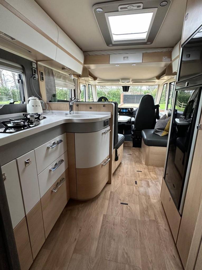 MOTORHOME DEPOT RICHMOND-UPON-THAMES are excited to bring you this luxury 2023 Mercedes Benz Hymer B-ML I 880 Automatic | all but new with ultra low mileage with ONLY 408 MILES on the clock (one owner) | yet to have its first MOT | C1 licence required | Arctic Pack | Crystal Silver with Grigio black leather interior & Grand Oak furniture | Laguna carpets (not laid) | electric step | solar panel | 5 Berth | 5 seatbelts | rear fixed double bed | over cab double bed | single bed made via dinette | washroom | separate shower cubicle | ceramic toilet with ventilation | reversing camera | cab & habitation air conditioning | twin bottle 11kg Gaslow gas system | centre dinette | rear garage | 2 x swivel seats | 1 x induction & 2 x gas ring hob | fridge freezer - 2 way opening | 32" TV in living area | 22" TV in bedroom area | roller shutter to windscreen | 6m silver Fiamma wind-out canopy | outdoor shower | self-levelling jacks | CAT1 S37 Alarm | WHY PAY TOP DOLLAR WHEN YOU CAN PAY LESS FOR THIS 408 MILER | Any personal items seen in images may not be included