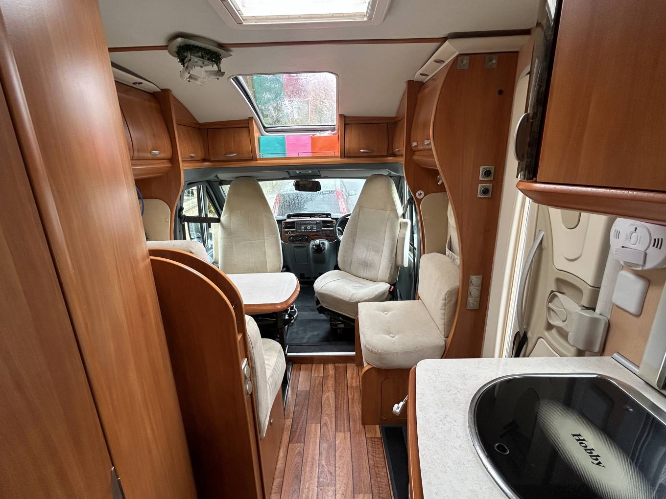 Step inside this beautifully crafted Hobby Van Exclusive 3 berth motorhome and you’re immediately struck by the warm, high-quality German build and clever use of space throughout its compact 6-metre length. The rich wood cabinetry, sleek finishes, and bright skylights create an inviting, homely atmosphere that feels far more spacious than you’d expect—perfect for both short getaways and extended adventures.