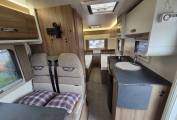 Entering from the passenger side via a low step the dinette area is straight ahead. The forward facing seats have 2 lap & diagonal seat belts for travelling passengers. The front cab seats rotate allowing seating for four when parked perfect for entertaining.