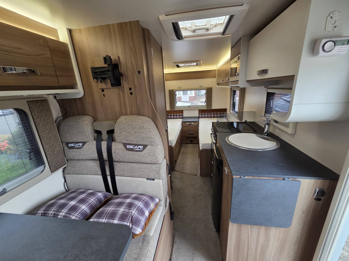 Motorhome Depot are pleased to present this excellent 2021 Swift Escape Compact C502 2-berth,4-belt motorhome. Based on the , it is powered by the reliable 2.3 Multijet 120BHP engine and 6-speed gearbox. Having only covered 20000 miles, it has had 1 owner. This motorhome has FSH and will come with a fresh habcheck,MOT and service so the next owner can have complete peace of mind.The GVW is 3300kg with a payload of 500kg so it can be driven on a standard UK licence and is only 6.44m long so is very easy to handle.