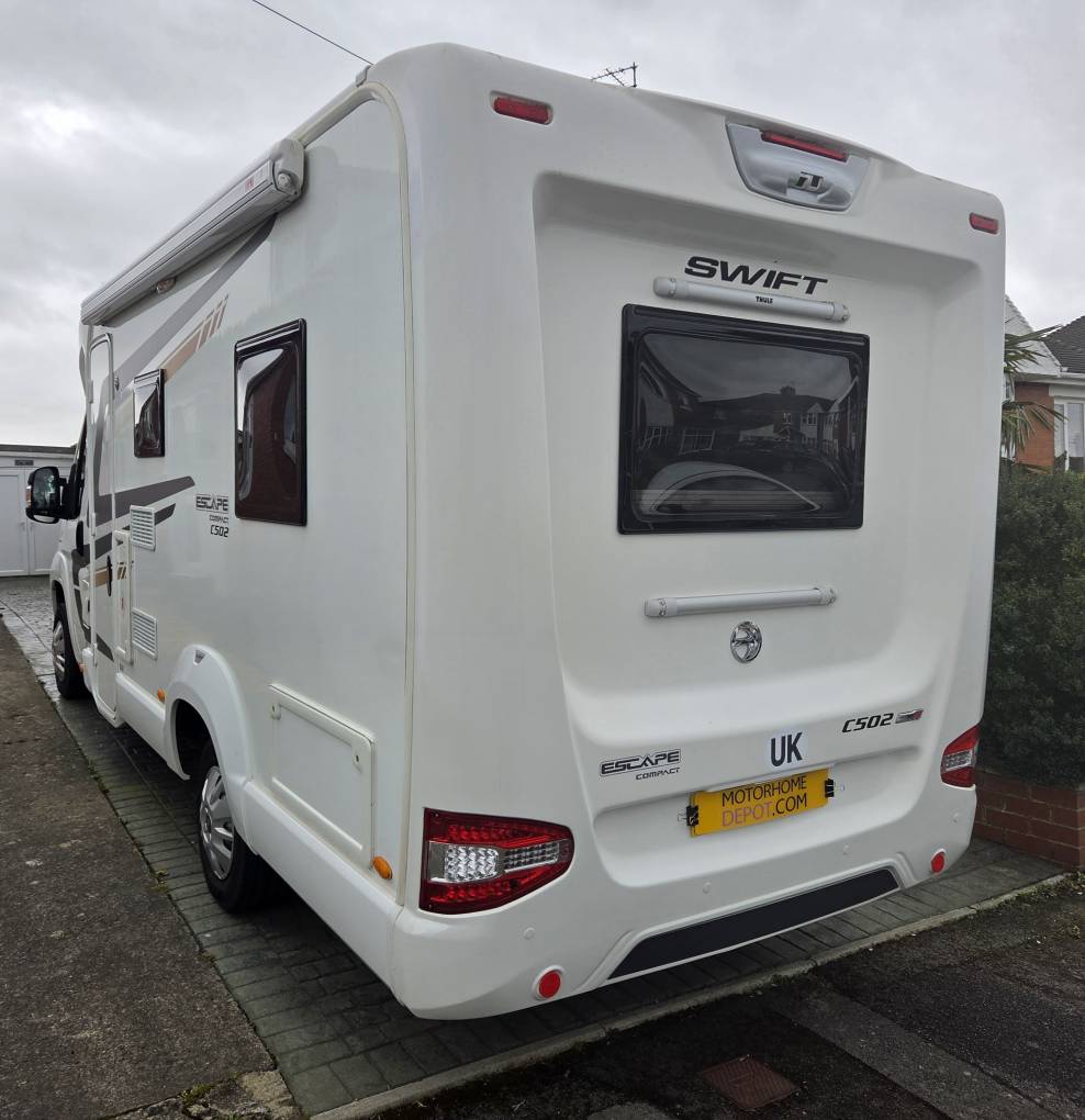 The Swift Escape Compact C502 is a popular 2-berth, low-profile coachbuilt motorhome designed for couples who want the luxury of a coachbuilt vehicle with the maneuverability of a narrower campervan.