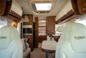 - Swivel captain’s chairs in the cab integrate seamlessly into the living area.