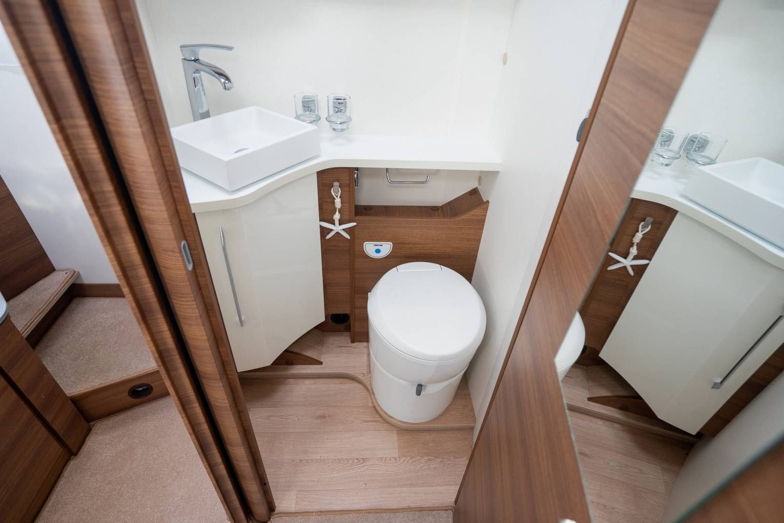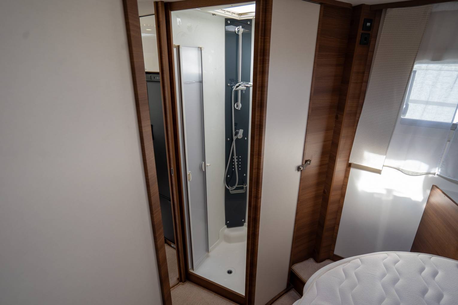 - Height-Adjustable Garage: The rear garage features two large access doors, an external shower point, internal lighting, and a 230V socket. The rear island bed is electrically height-adjustable by 30cm, allowing you to raise it to fit bicycles or larger gear in the garage
