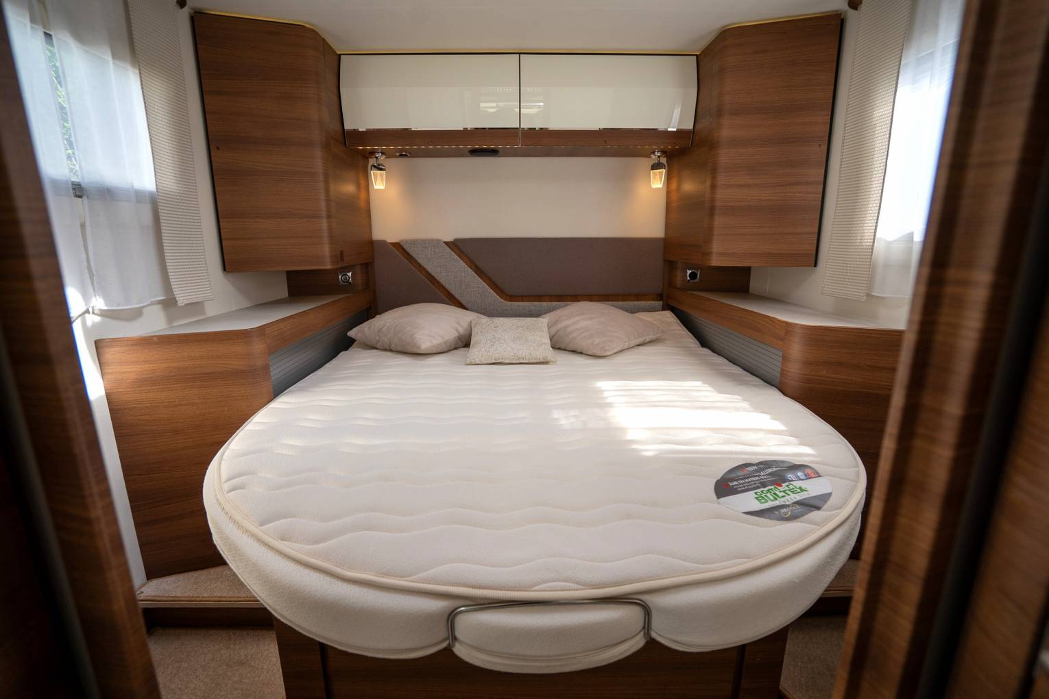 - Rear Master Bedroom: A luxurious rear Island Bed flanked by extra-large bedside tables and his-and-hers wardrobes. The bed retracts into a daytime "chaise longue" position to increase floor space.