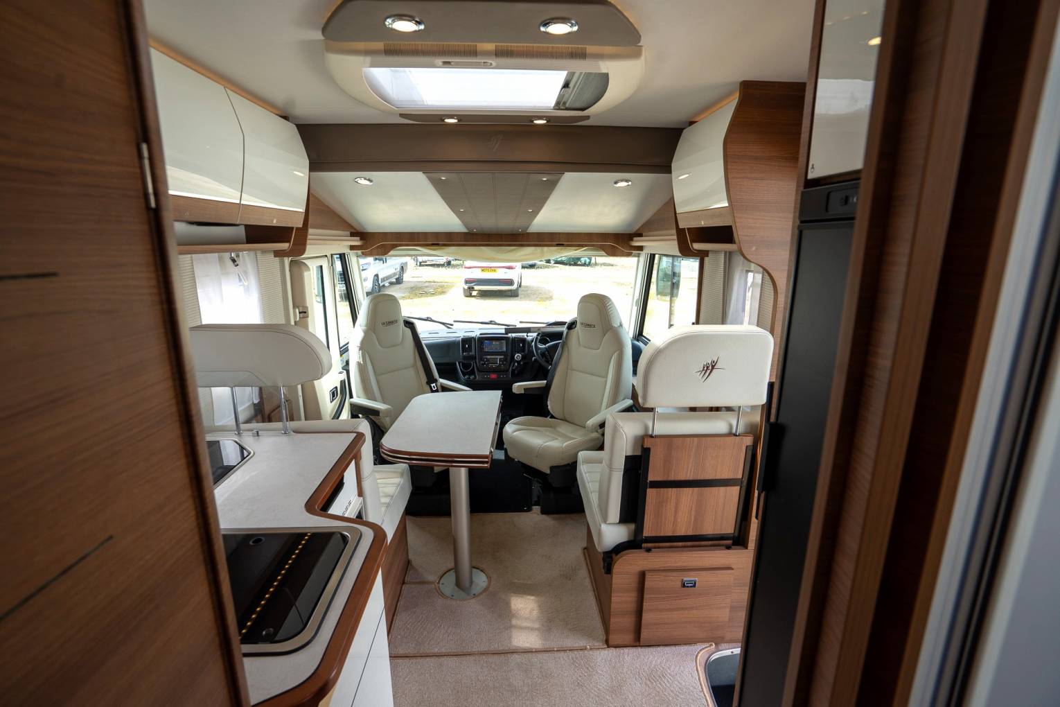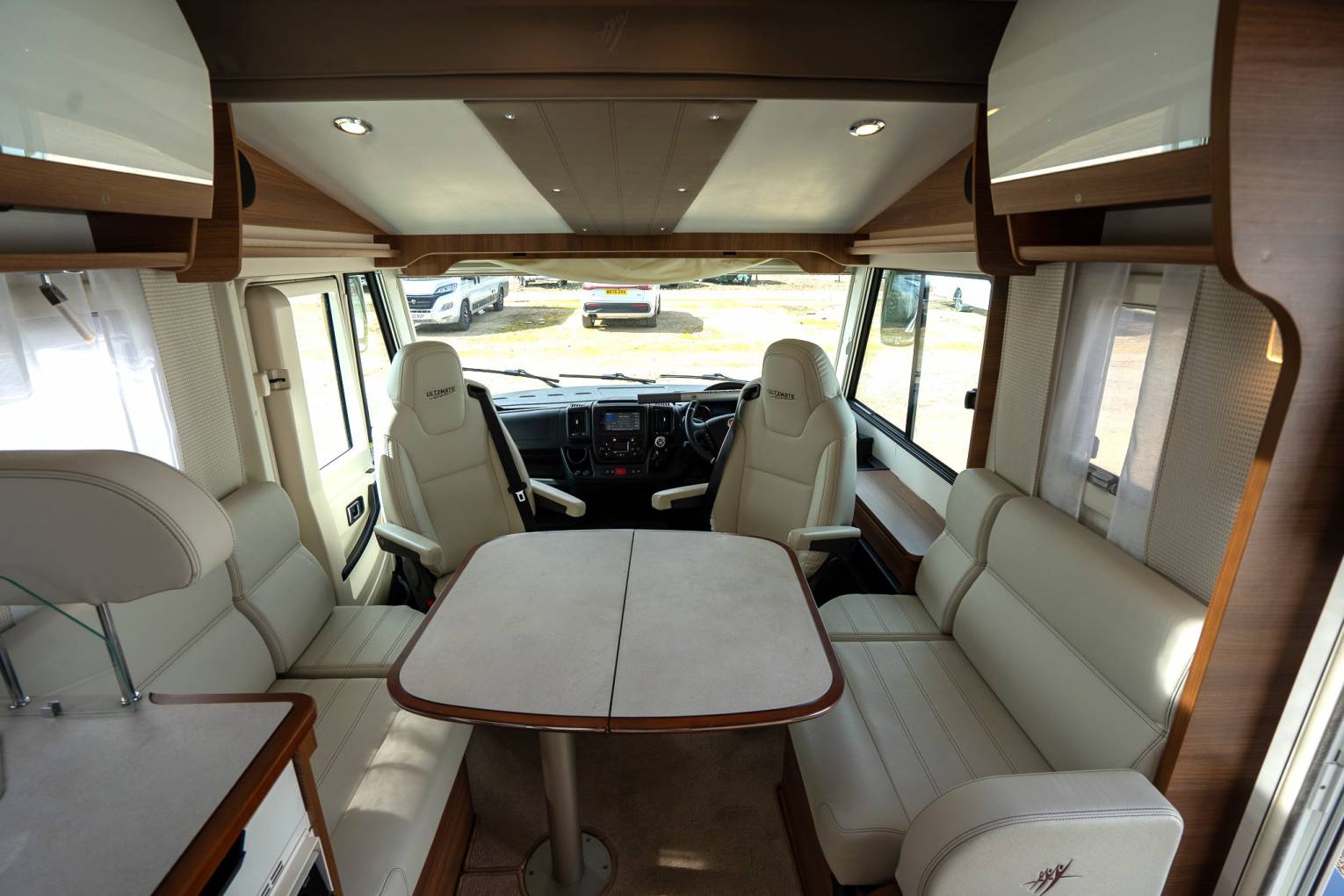 Many features including Phantom Tracker, Solar Panel, Reverse Camera, Kenwood Garmin Sat NAV Media system, Diamondbrite Paint Protection, alloy wheels, Remis Cab blinds. Truma iNET, 4 Berths with 4 travelling seat belts. Plus the Ultimate Line Specification.