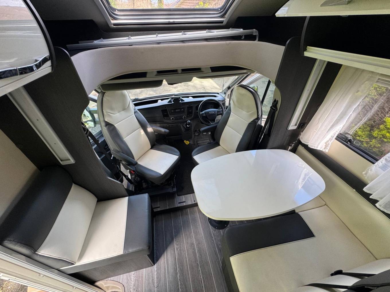 Front dinette seating area with travelling seatbelts
