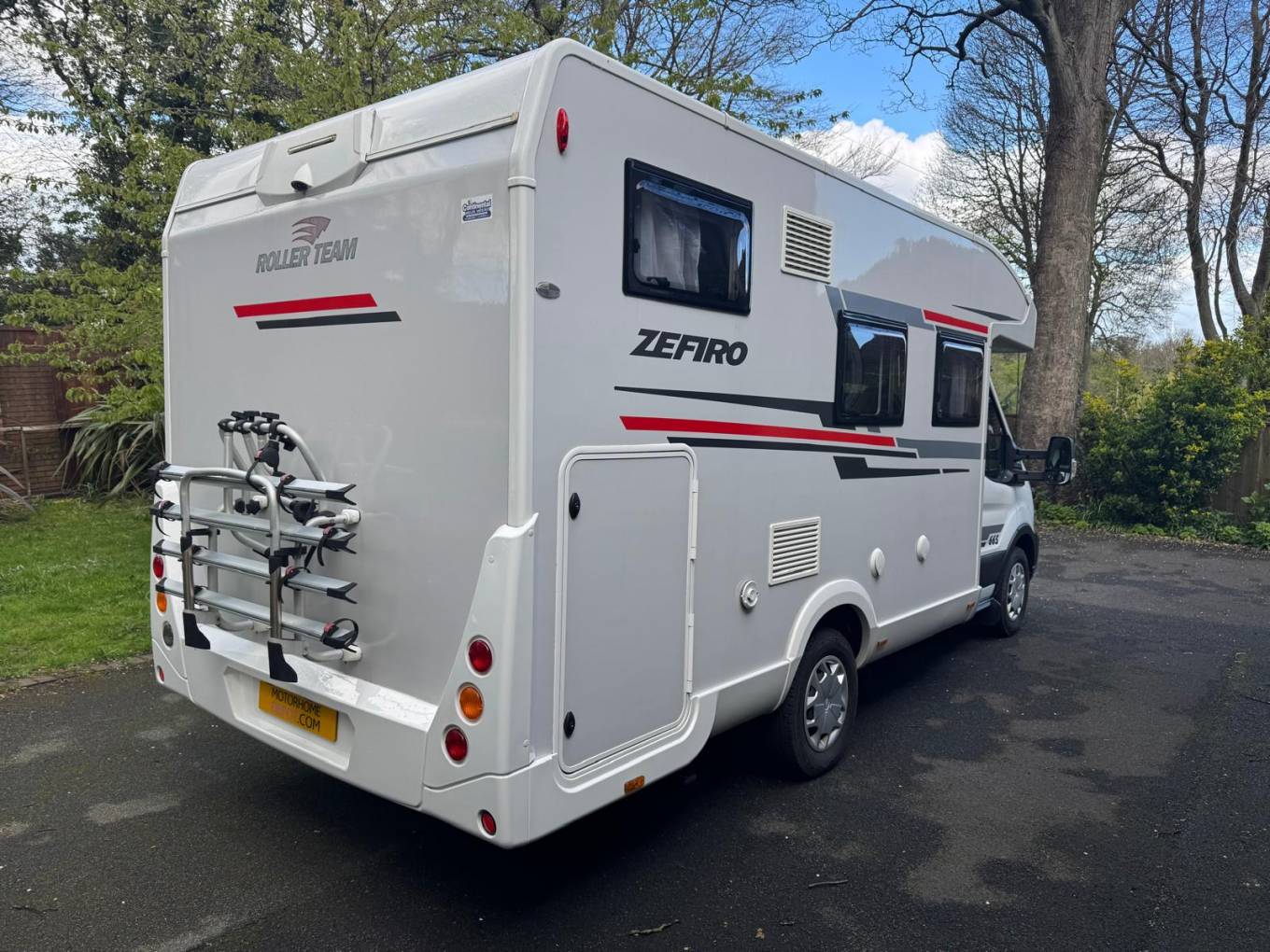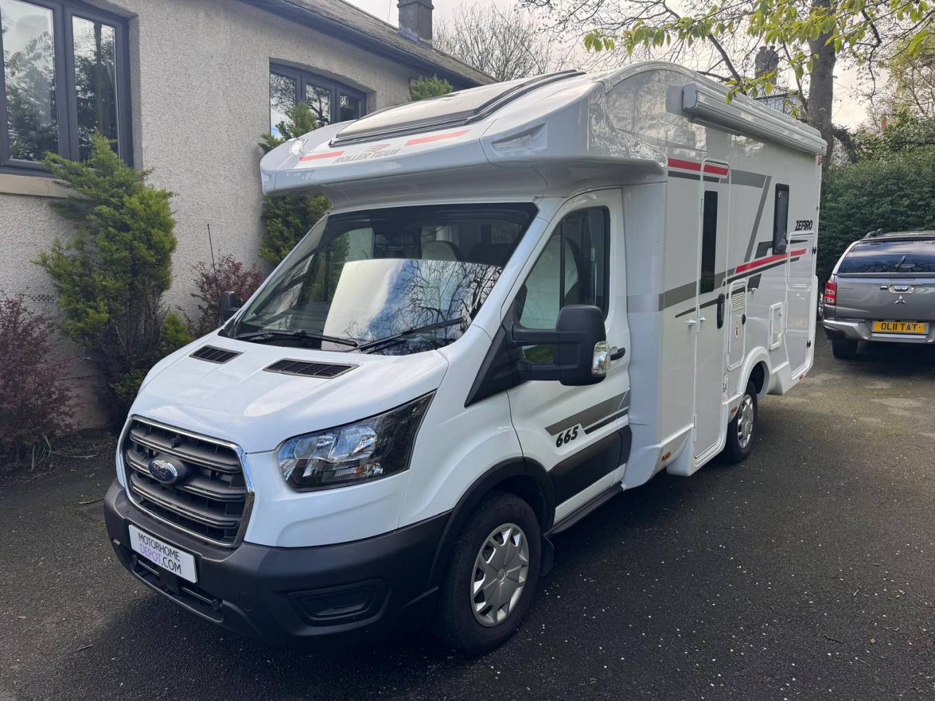 2023 Roller Team Zefiro 665 motorhome, built on the Ford Transit chassis with a 2.0L diesel engine and manual gearbox. This 4-berth, 4-seatbelt model offers a practical layout with a fixed rear bed and an electric drop-down double bed over the lounge area. With a maximum authorised mass of 3500kg, it can be driven on a standard UK driving licence.