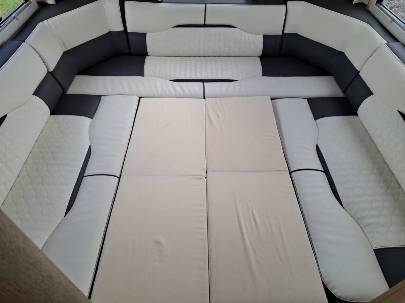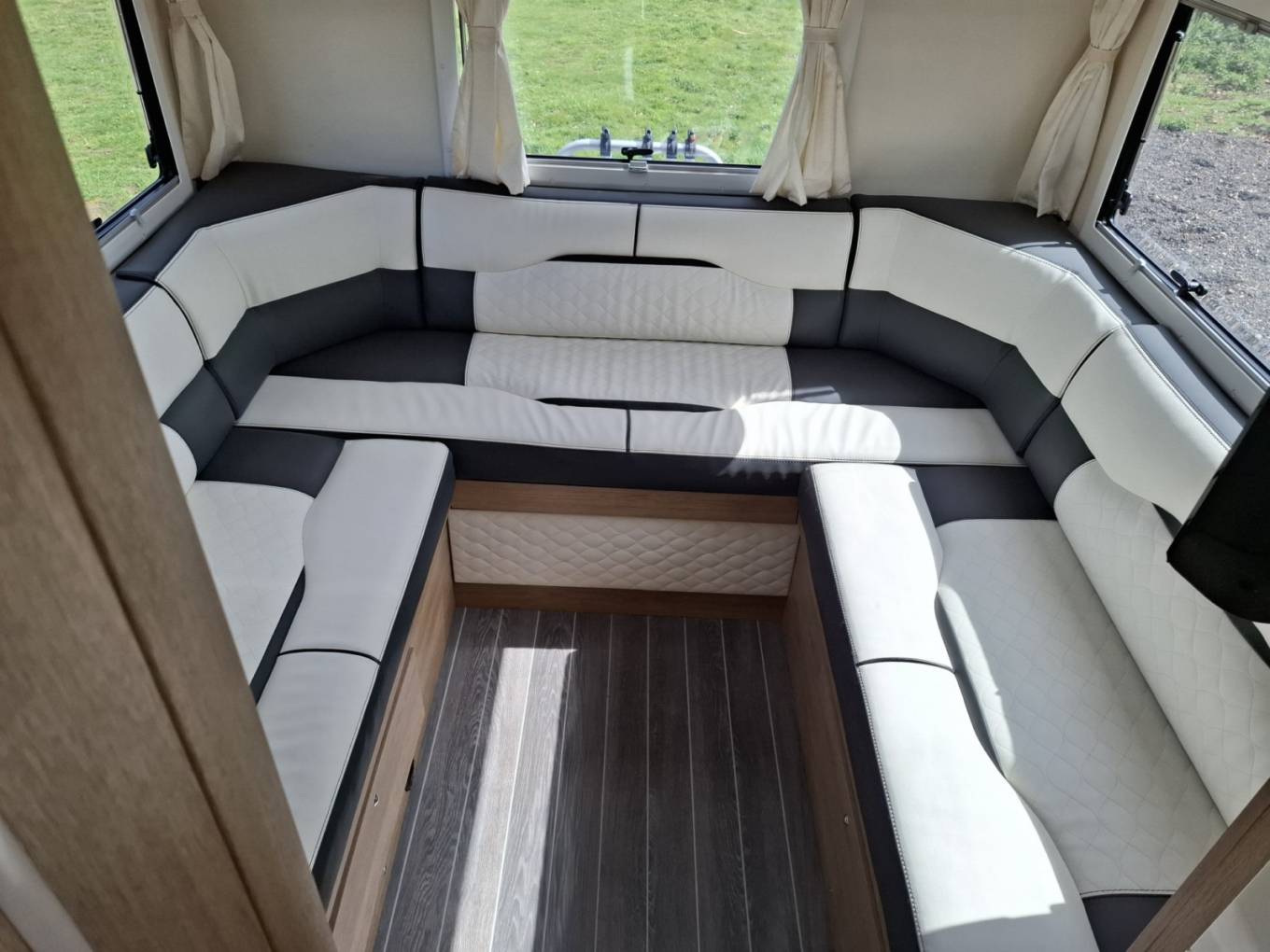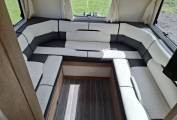 To the rear of the motorhome is a light and airy lounge with a U–shaped seating that can be utilised with a free-standing table.If required, this seating can be made up into another double bed.