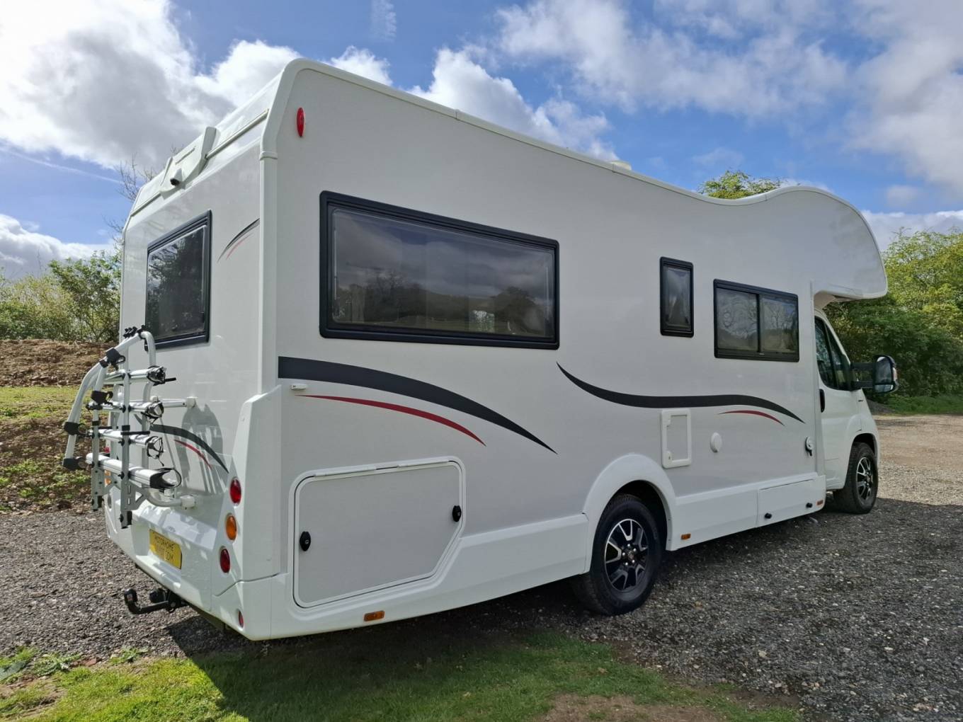 A stylish, leather upholstered modern motorhome with the ability to host and sleep up to 6 people in comfort with many added extras.