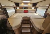 The T143 LE is a well thought out layout designed for two to three people. At the front, the swivel cab seats combine with the centre dinette to create a bright and versatile lounge area, ideal for relaxing or dining, with 4 seatbelts fitted for safe travel. To the rear, the fixed single bed can be configured as either a large double or twin singles, measuring 205/195 x 85cm, a genuine, comfortable sleeping space that requires no nightly conversion. The dinette also offers an additional sleeping berth if required. Beneath the bed, the large rear garage provides excellent storage, accessible via the rear doors, and is ideal for bikes, chairs, or bulky outdoor equipment, alos plenty of storage inside the motorhome.