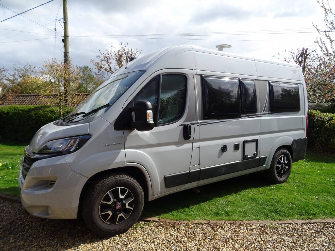 Built on the Fiat Ducato with the 2.3 Multi-jet engine, upgraded to 140 bhp, 9 shift Automatic gear box. Length is only 5.4m making it a very easy camper to drive.