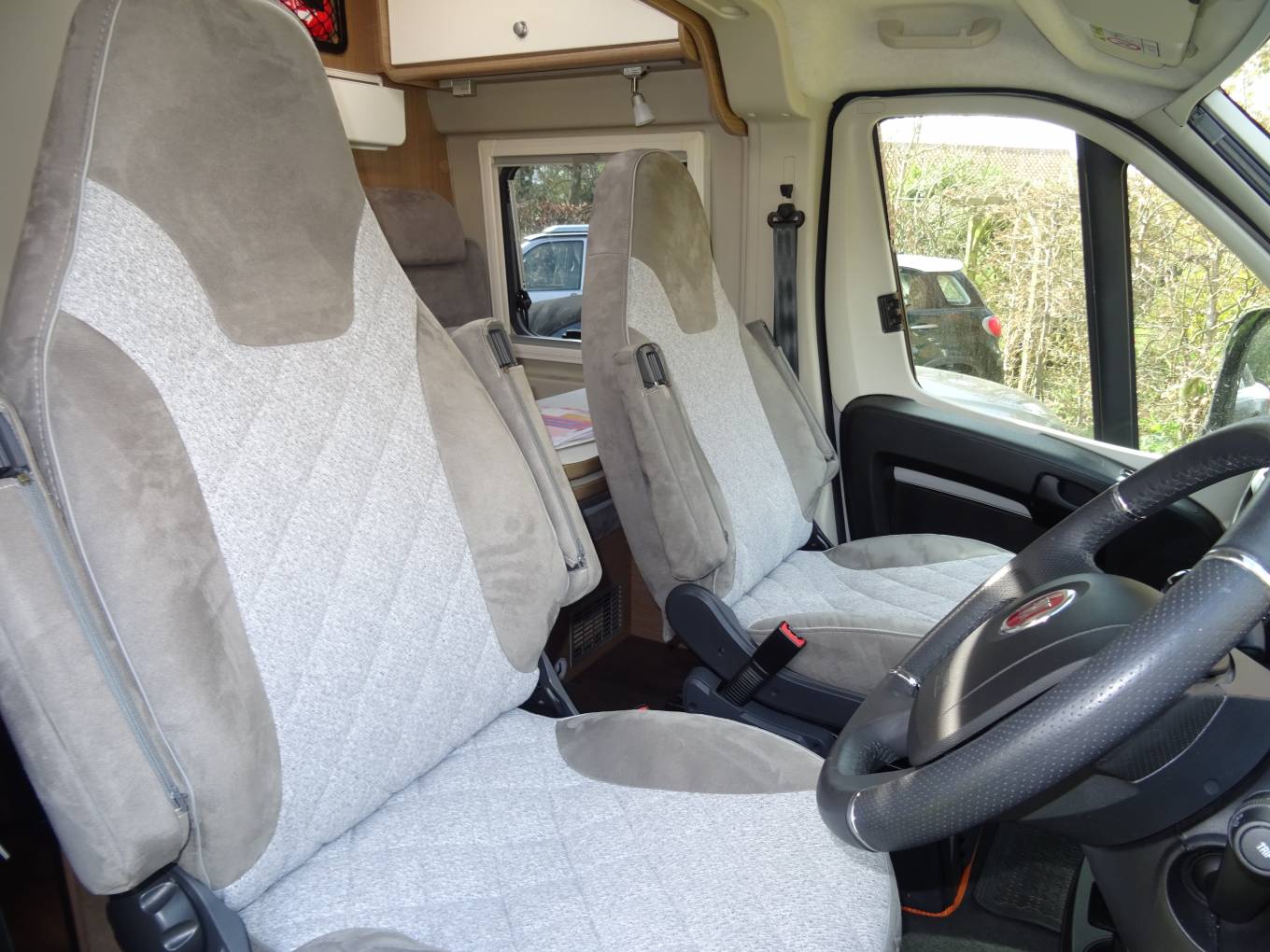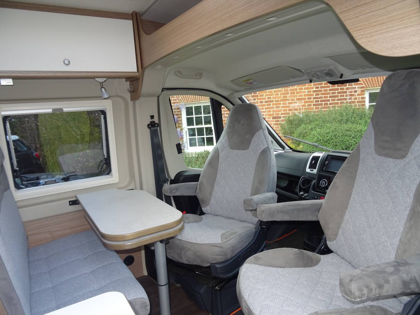 Two forward facing belted seats and two swivel captain seats make for a comfortable lounge/dining area with a sturdy adjustable table. A small bed can be made in this area. Skylight, full flyscreen fitted to the habitation door.