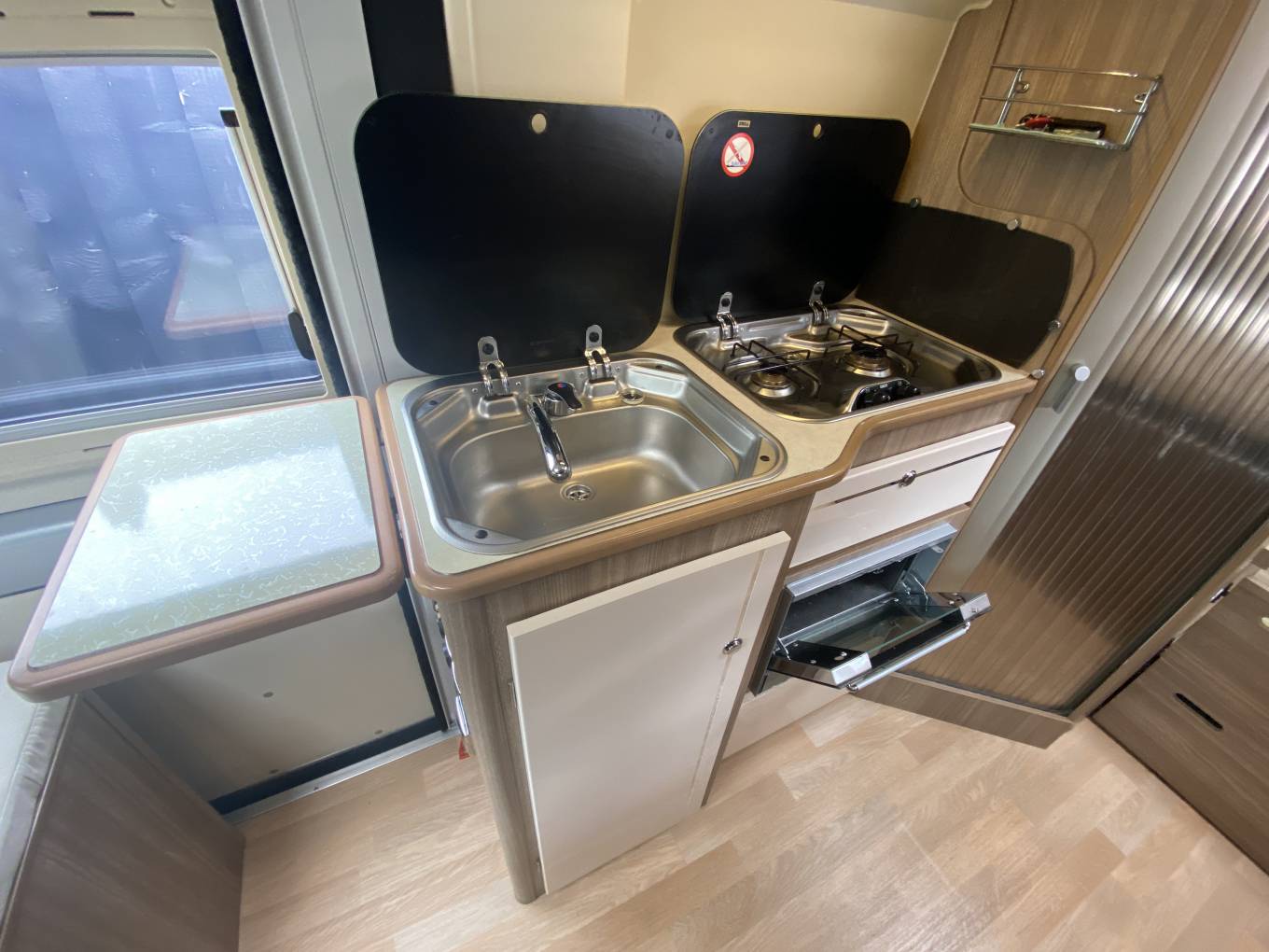 This motorhome would be ideal and offers great value and options for a couple or small family, it has a maximum vehicle weight of 3500Kg, which allows anybody to drive the motorhome on a standard full UK driving licence and comes with two sets of keys. The external length is 5.99m.