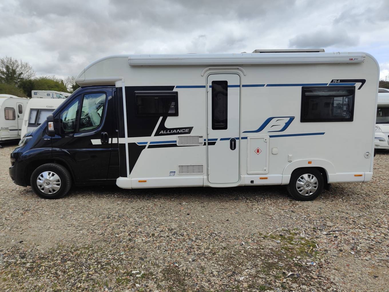 This is a near perfect example of the popular Bailey alliance 70 6. This 6 berth, 6 seatbelt model features a large rear seating area that makes a very large double bed, a dinette to the front that makes a second double and an electric drop down double. With a well equipped side kitchen and a spacious bathroom, this family motorhome ticks all the boxes and is also plated at 3500kgs so can be driven by all. This example also includes as extras the following. Awning, satnav, an Autowatch cat 1 alarm, solar panel, cycle rack, reverse camera and a tv with aerial. One owner and only 16,500 miles from new with full service history with both a full service and habitation test done feb 2026. Based on the excellent Peugeot Boxer cab with the 2.0 diesel that produces 160bhp. Cab aircon, cruise control and a 6 speed manual gearbox. Based in Kent and more pictures available.