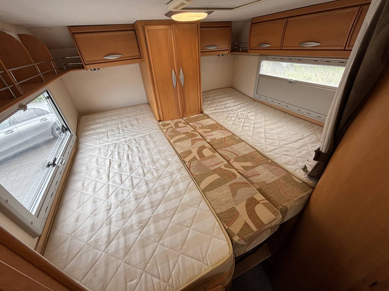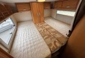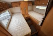 In front of the beds you have the washroom with the desired large separate shower cubicle. The kitchen area is mid habitation, moving forward you have the centre dinette area which allows you to travel 2 extra people and offers another area to relax. This area can be turned into a five-seater dinette when you take advantage of the front swivel seats and can double up to make space for a small bed for a child.