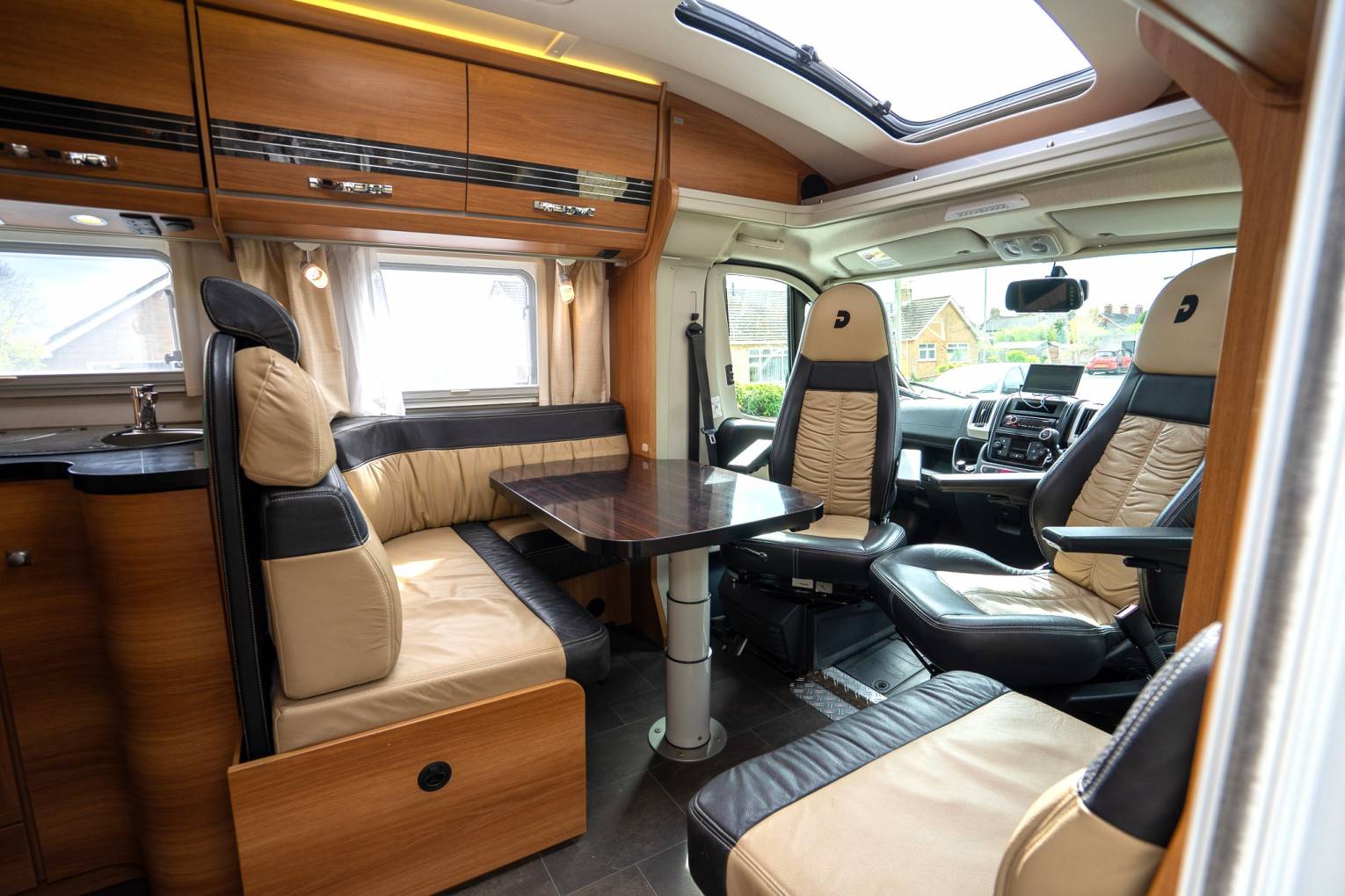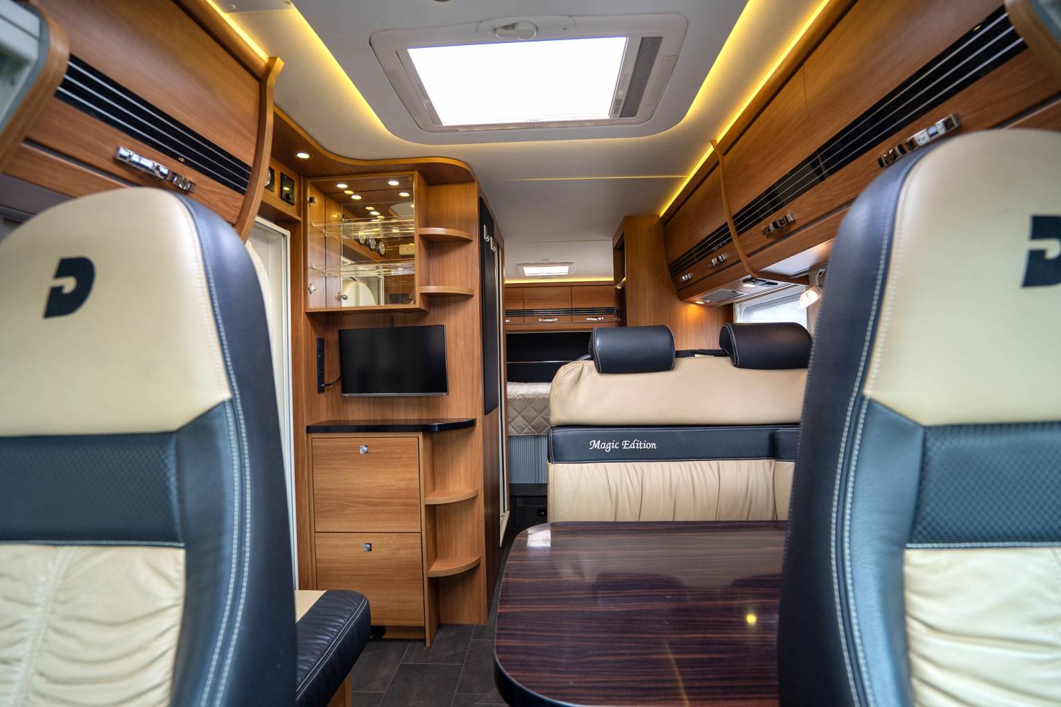 2014 Dethleffs Magic Edition T1 DBM (Black Magic Edition) - 4 Berth Luxury Low Profile Motorhome with Rear Island Bed, 4 Travelling Belts and Garage.