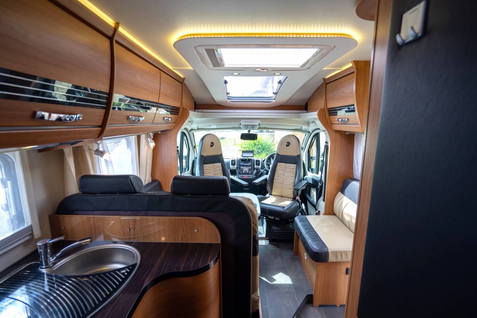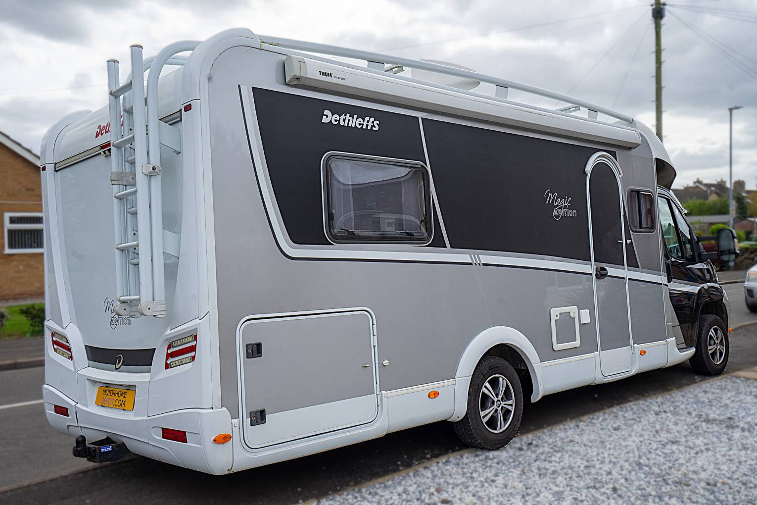 Based on the Fiat Ducato 2.3 litre 6 speed Manual gearbox, Day time running lights, Tow bar, Alloy Wheels, Alarm, Wind out Awning, Roof Bars & Ladder.