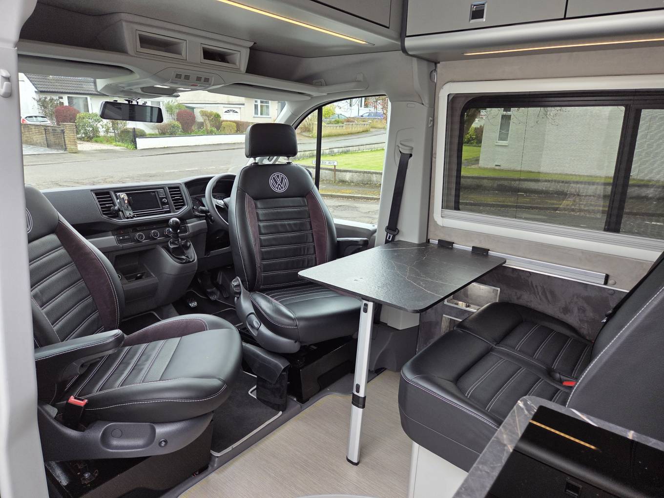 Twin Captain’s seats up front in Alcantara leather with VW badge embroidery