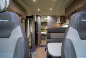 • Lounge/Dining: Contemporary styling with L-shape lounge, side-facing sofa, and swivel captain's chairs.