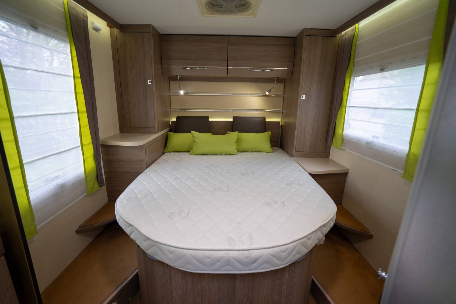 • Rear Bedroom: Fixed Island Double Bed with fantastic headroom, wardrobe storage on both sides, and privacy door.