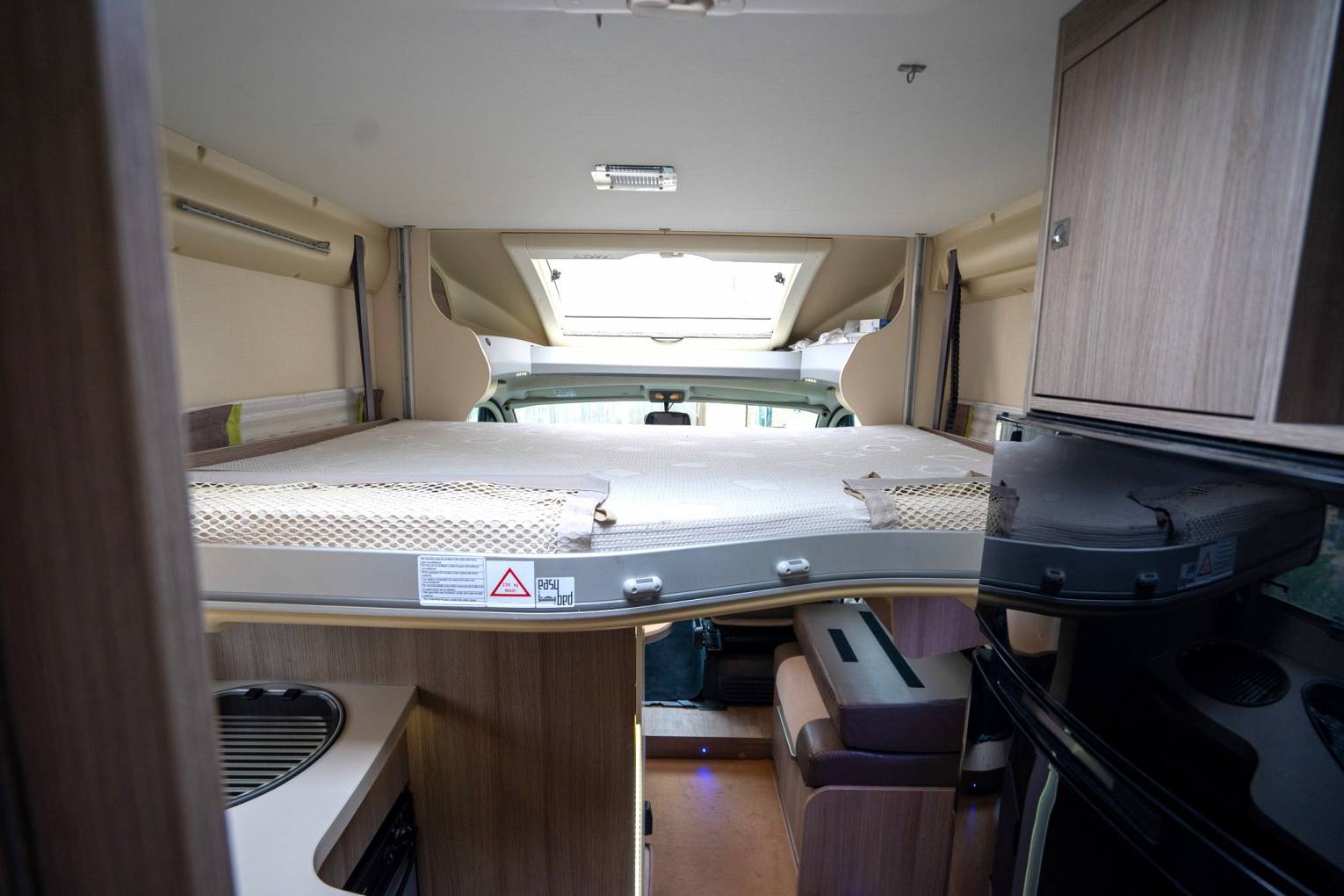 • Easy Bed System: Manual system to raise/lower the island bed by ~350mm to maximize garage space.
