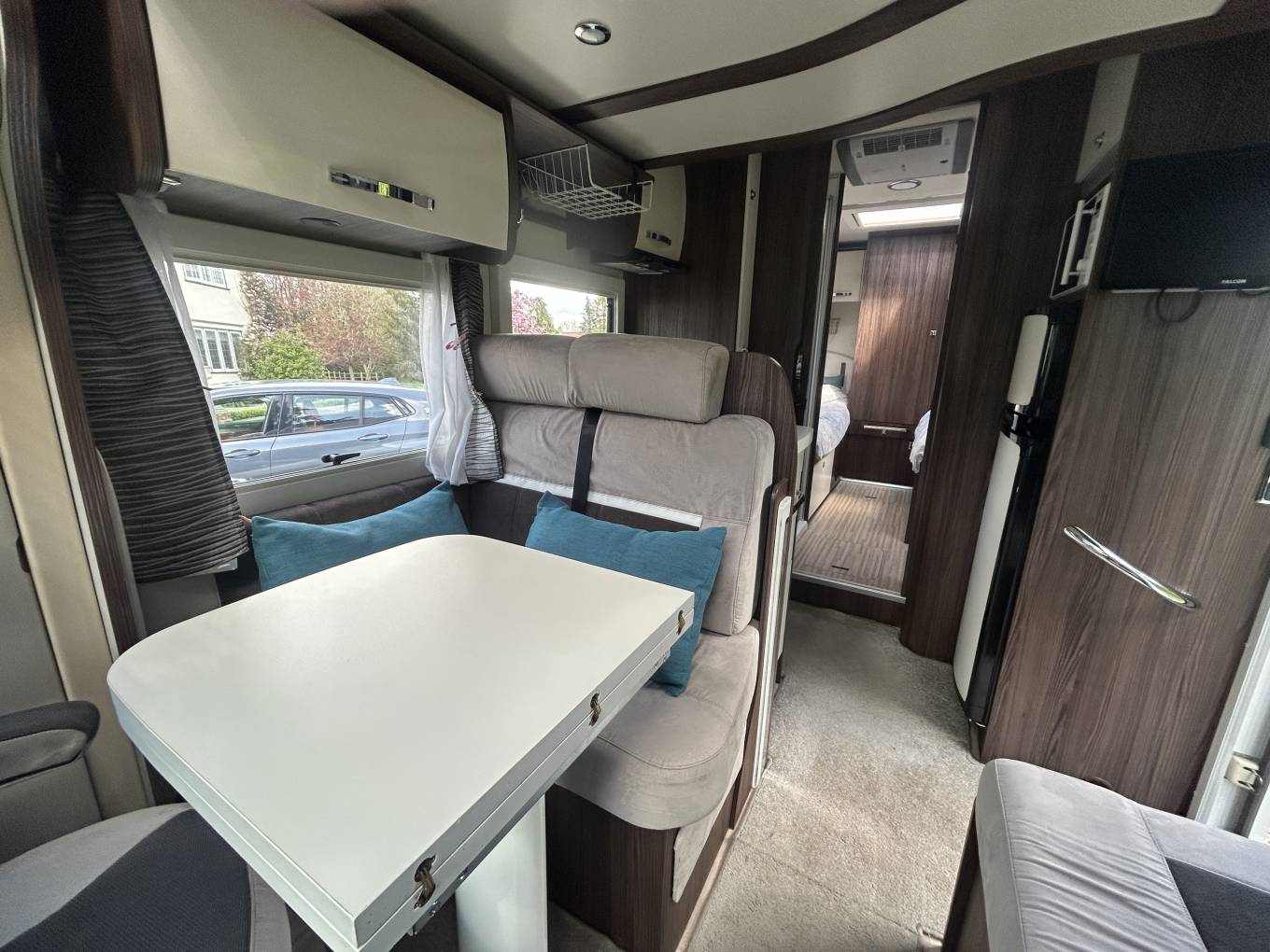 Externally this Mileo is packed with extras, these include the large wind-out awning, 150 watt solar panel, 2 gas bottles, tow bar, cycle rack and external bbq and shower point. It also has a large rear garage/locker with dual access. The motorhome comes with an S7 Trackstar tracker and is fitted with GHOST immobiliser for extra security.