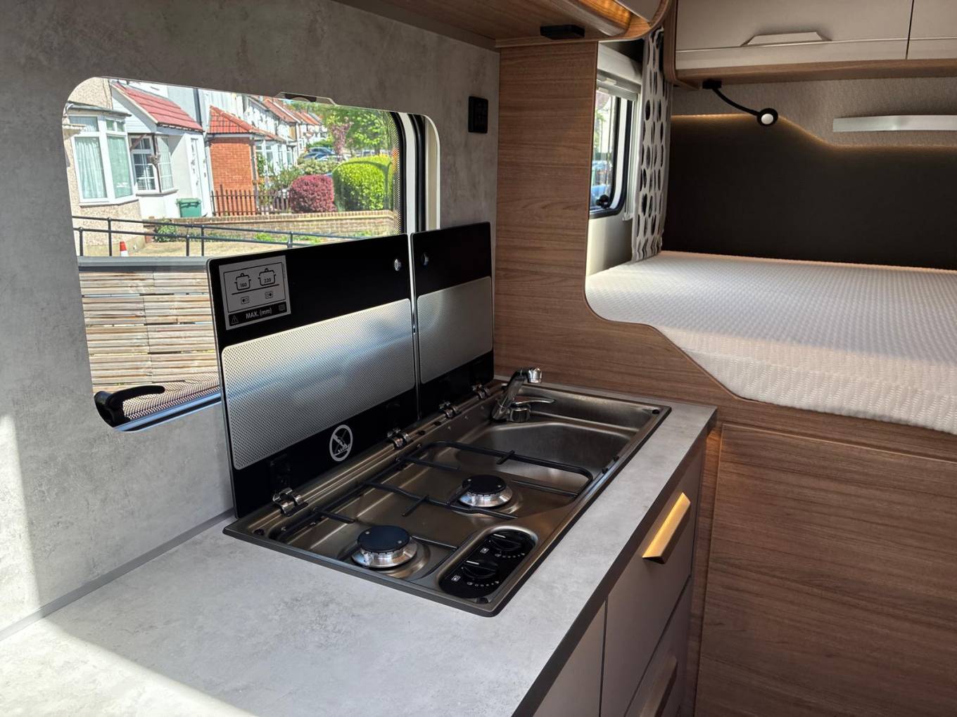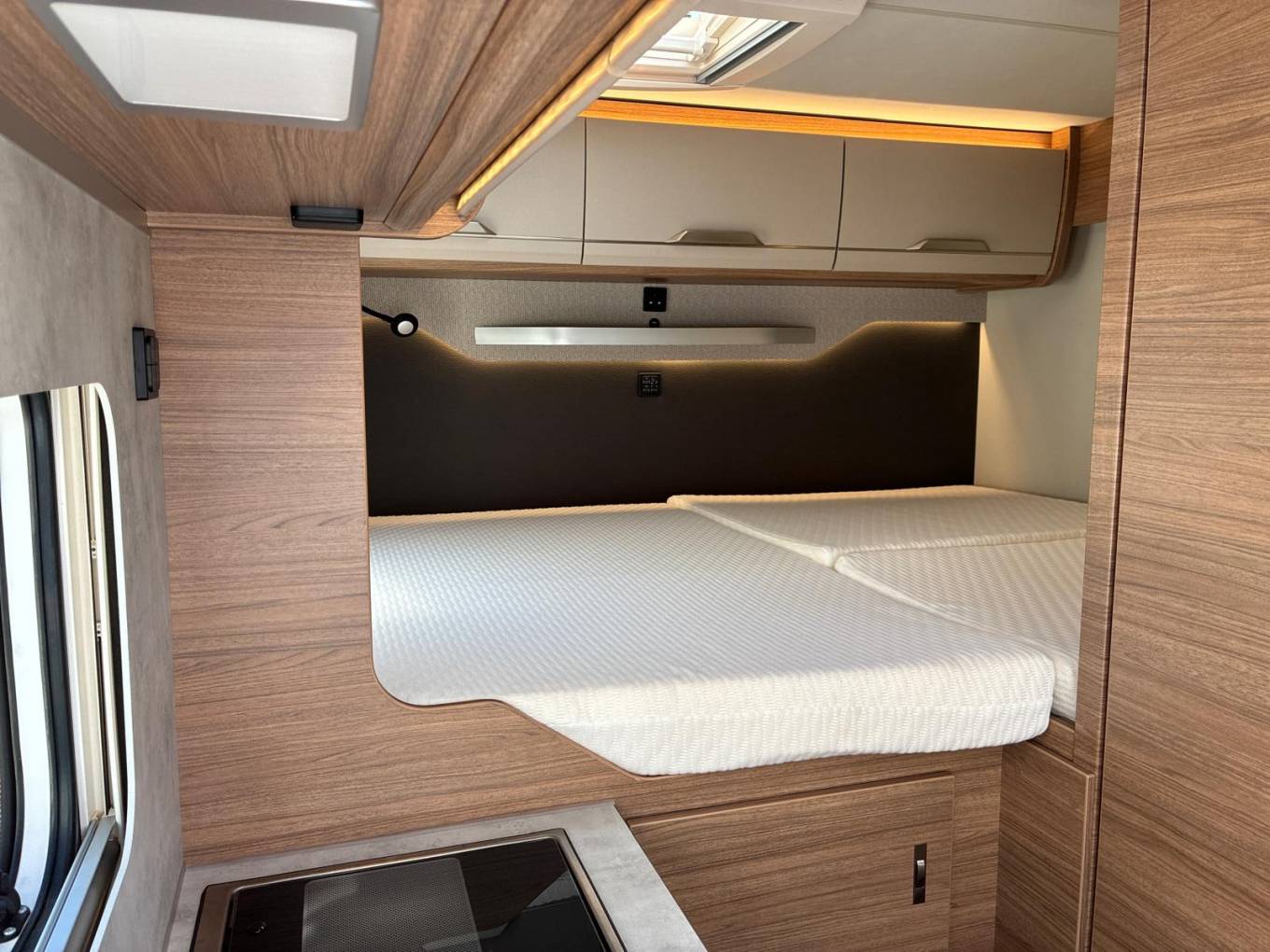 MOTORHOME DEPOT RICHMOND-UPON-THAMES are pleased to offer this 2024 (73 plate) VW KNAUS VASATION 500MQ | low mileage 17,750km on the clock (equates to approx 11,029 miles) | Left Hand Drive | built on the highly desirable VW T6.1 chassis Automatic DSG | one owner | transferrable warranty | 3 berth | 4 x seatbelts | 2 x swivel captain chairs | cab air conditioning | Thatcham alarm | wind-out Thule Omnistor canopy | satellite system | Avtex Satellite TV | gas bottle | solar panel | mid-woodgrain interior/coordinating cream storage units | 2 x gas ring hob glass lid/splashback over | sink with hot & cold water tap glass lid/splashback over | fridge freezer | front dinette converts to small single bed | swivel/double dining/coffee table | cassette toilet | wash hand basin with hot & cold mixer tap | Xpand bathroom & shower | large fixed double bed over garage area | ample storage throughout including garage area | very bright, modern & airy compact motorhome - under 6m in length