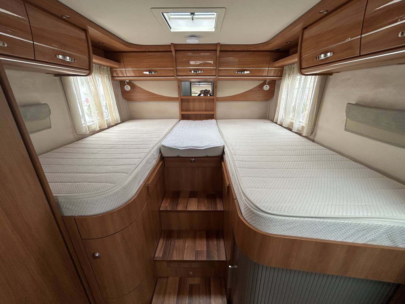 Comfort is exceptional year-round thanks to the double floor insulation, Alde underfloor heating system alongside Alde heating and hot water, while practical features such as USB points throughout, DAB and Bluetooth radio, cruise control, multifunction steering wheel, and cab air conditioning enhance the driving and living experience.