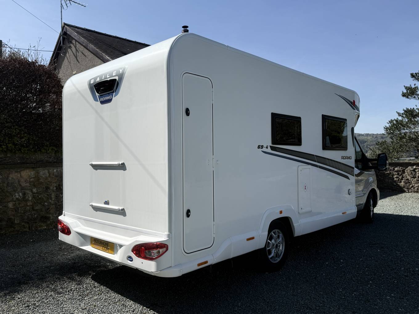 Motorhome Depot Wrexham and Gwynedd are pleased to offer this one owner, 4 berth, 4 belt motorhome from Bailey. Built on the Ford Transit with 1997cc engine and automatic transmission it comes with an MOT until the end of July, a recent 2026 habitation service and has only covered 4424 miles. The Adamo offers a spacious open layout yet provides 4 berths and 4 travel belts to make this a great and versatile vehicle for an adventurous couple or family of four. It has been up plated to 4100Kg and provides a generous 1040Kg payload. It does therefore require a C1 license however could be replated to the original 3500Kg if required.