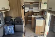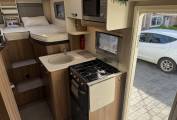 Carrying on through the motorhome, we come to the kitchen area where there is a Thetford oven along with a 3 ring gas hob supplied from the gas bottle located in the external storage unit. Next to the cooker is the sink with mixer tap and last but not least there is a large full length 3 way Dometic fridge with freezer compartment.