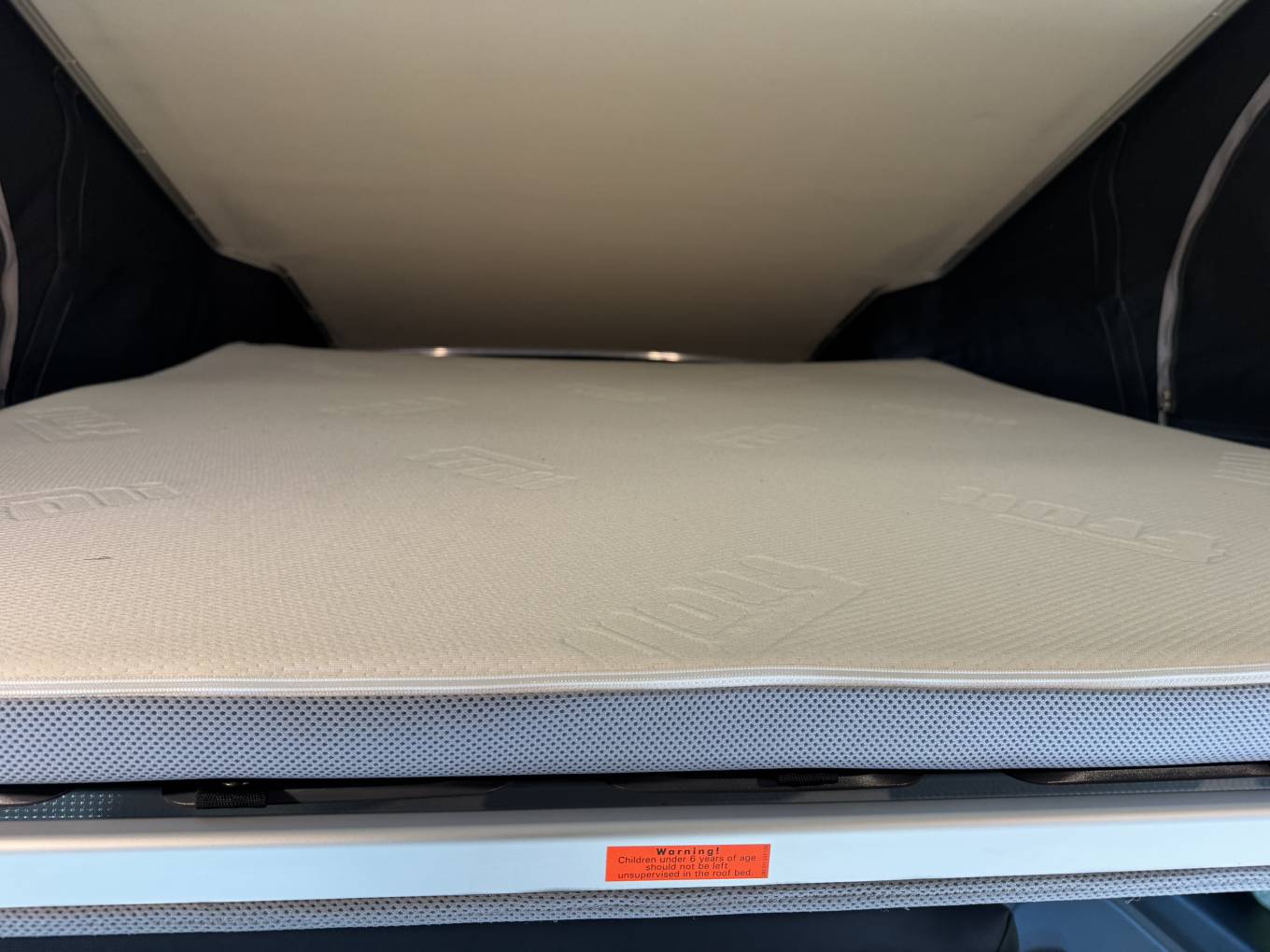 Sleeping arrangements are both flexible and comfortable. The rear bench seat easily converts into a double bed, while the pop-top roof reveals a second spacious double bed above, complete with ventilation and natural light. This setup comfortably accommodates up to four people, whether you’re travelling as a couple or with family.
