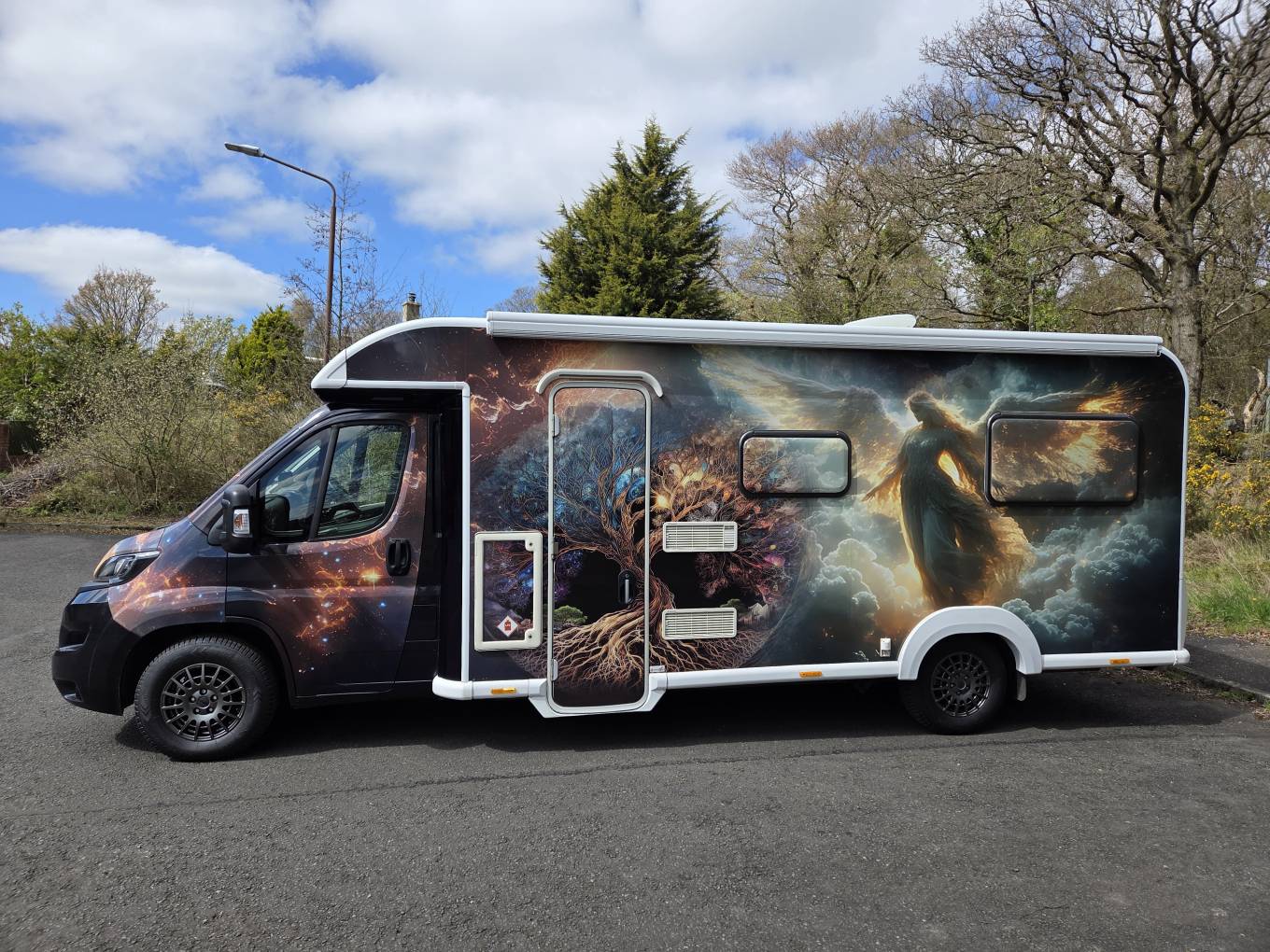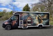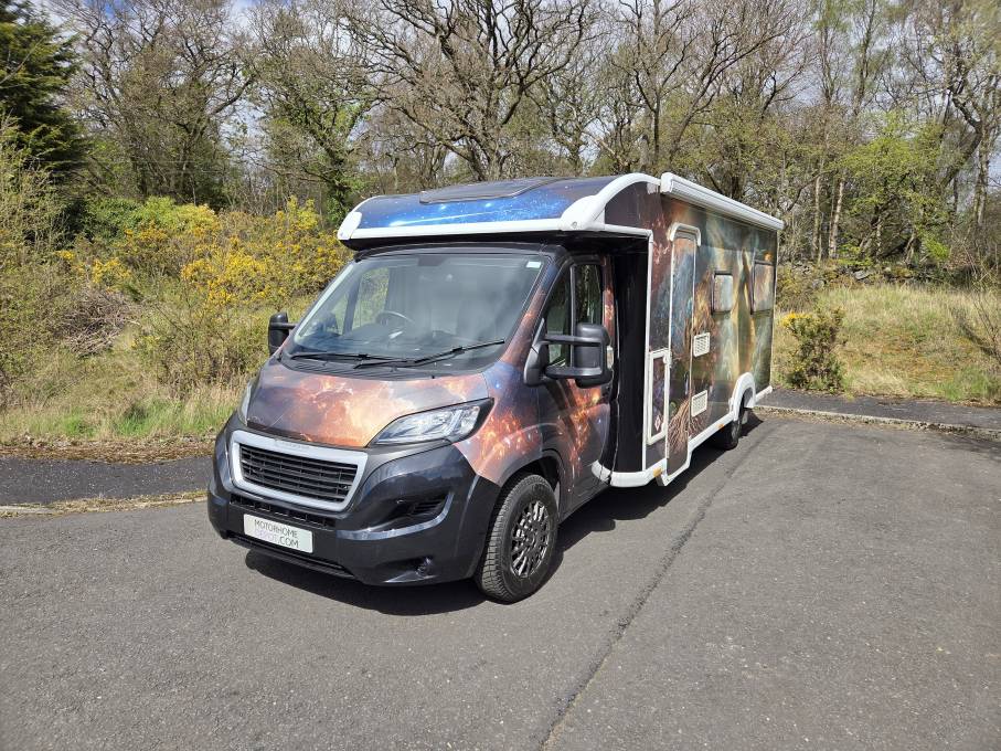This amazing and completely ‘one off’ motorhome is unique to Planet Earth. The mystical creativity and expression of the owner has been professionally wrapped on to the exterior of the vehicle resulting in a head turning extravaganza when on the road.