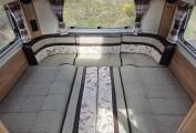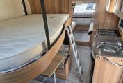 The Bailey 765 has a mountain of storage space. Under every seat, top cupboards and even cupboards under the drop down double bed.