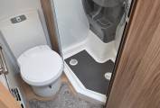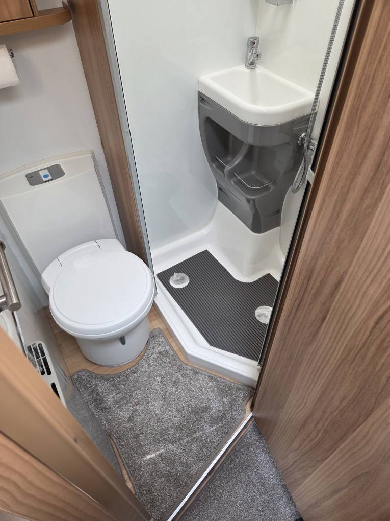 The 765 has a good size toilet and shower with an inbuilt sink and vanity unit. The sink is actually built into the shower section so it doesn’t intrude when using the toilet and dressing etc. A radiator keeps you toasty warm here too.