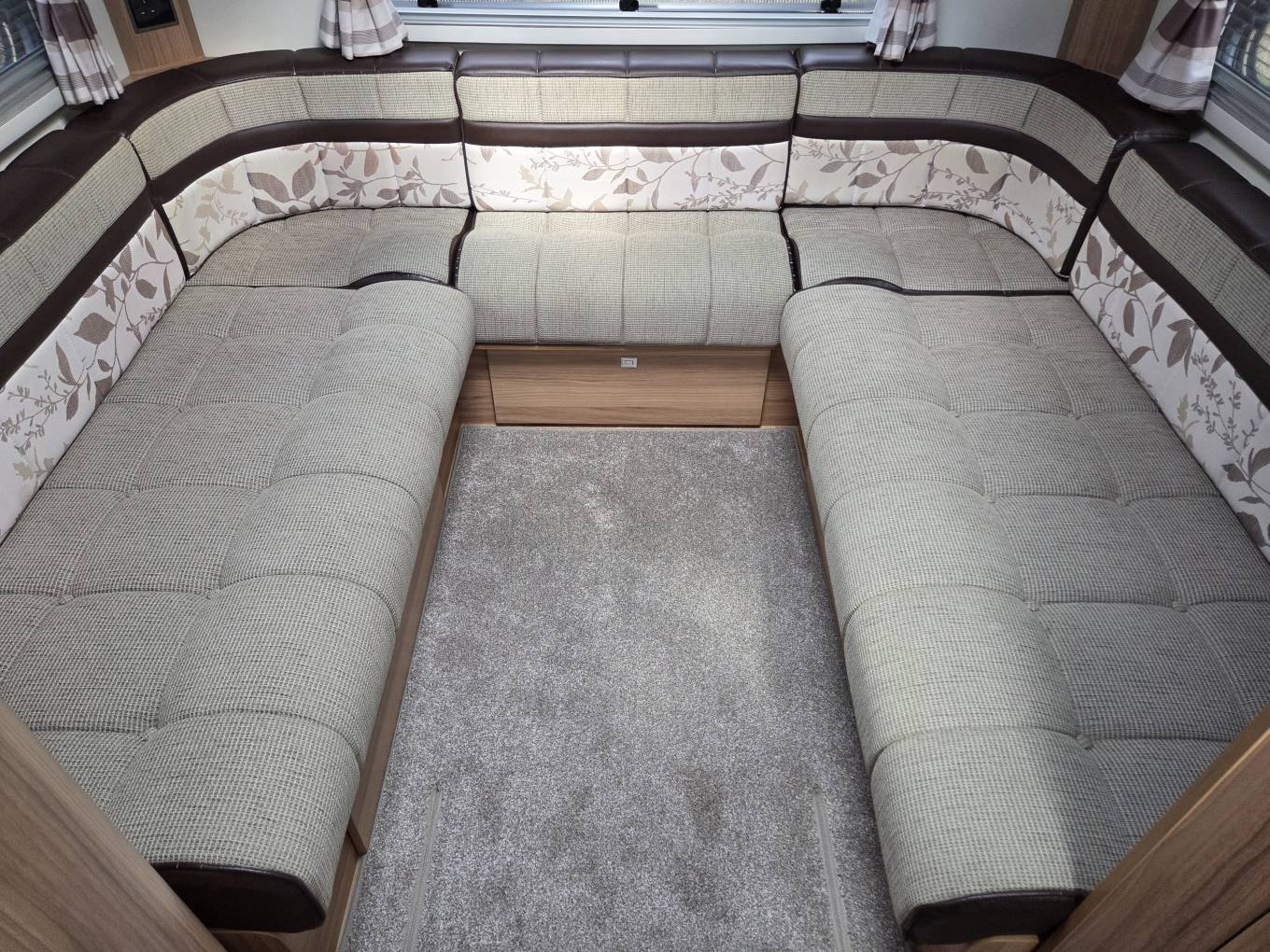 In the rear lounge area there is a very comfortable wrap round U shaped seating area suitable for up to eight people. The seats convert into a very spacious King Size sleeping area.