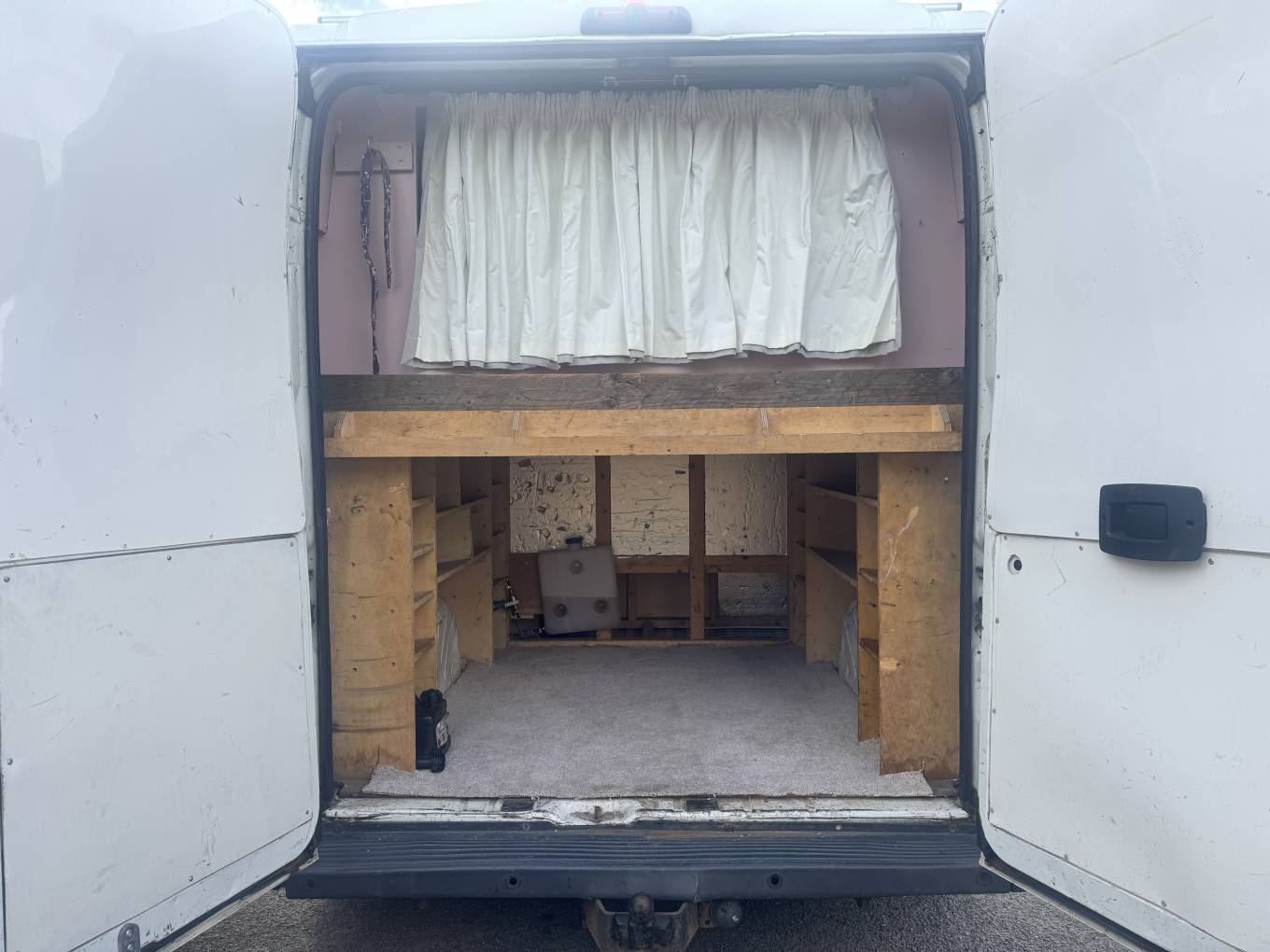 This is a well presented two berth campervan conversion with a distinctive and practical layout. The fixed rear bed offers a comfortable sleeping space without the need for setup, while also providing a large storage area underneath, easily accessed from the rear doors and ideal for luggage or outdoor equipment.