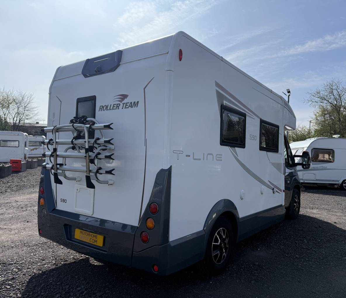 Other great features fitted in this T-Line 590 = solar panel, alloy wheels, bike rack for 4 bikes, TV with Visionplus aerial, alarm and a Phantom Tracker (subscription based).