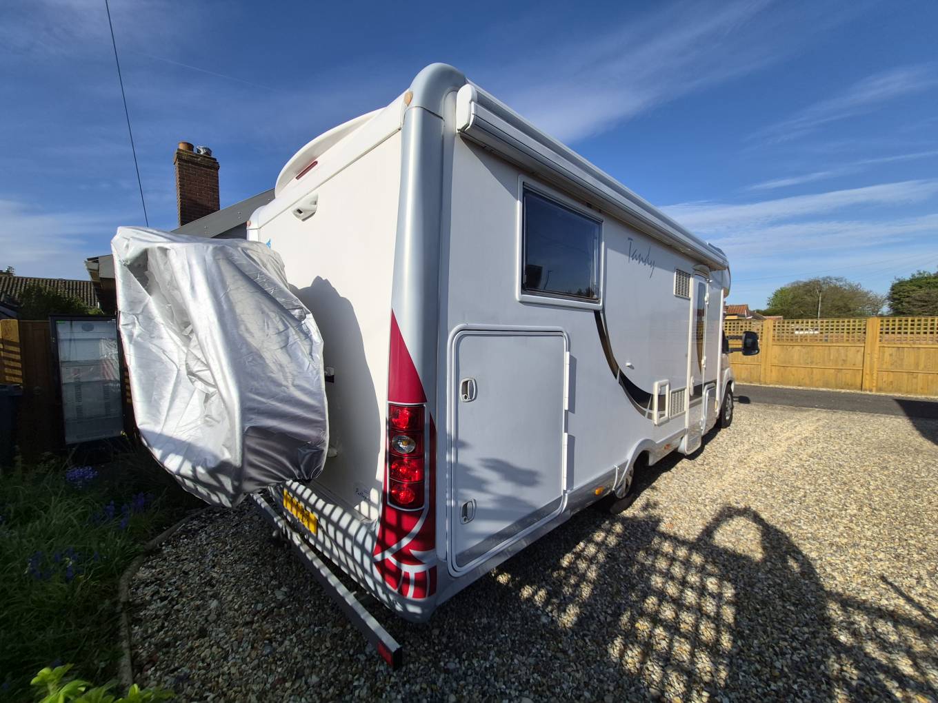 Motorhome Depot are pleased to bring to market this 2008 McLouis Tandy 673G Coachbuilt Motorhome with Twin Fixed Beds Separate shower Cubicle and Toilet compartment with Large Garage. Complete with Wind out Awning, Satellite dish, TV in Bedroom and living area, Cab Air-Con, Solar Panel, Tow Bar, Automatic 3 way Fridge Fridge with Separate Freezer, Spare Wheel, External BBQ Point and Bike Rack. 4 Berth with 4 Travelling seat belts.