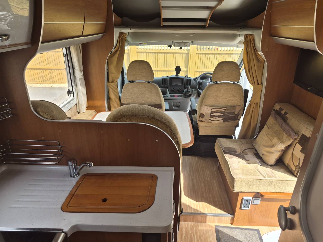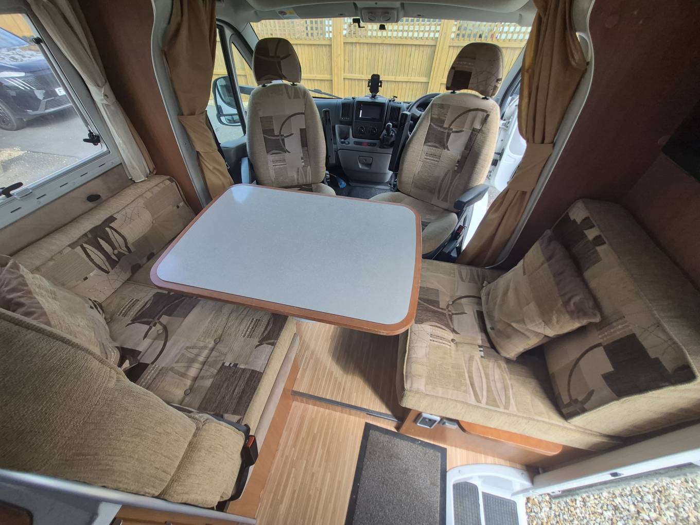 L-Shaped Lounge with 2 Rear seat belts fully adjustable dining table with Telescopic leg which Converts into an Additional Sleeping Area, wall mounted TV. Captains seats Swivel to provide dining for up to 6 adults.