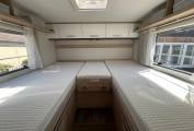 Inside, the motorhome delivers a bright, spacious, and highly practical living environment. The clever 4-berth layout includes a fixed rear bed that can be arranged as two comfortable single beds or a large double, offering flexibility to suit your needs. Under the bed are 2 storage cupboards with hanging rails for clothes. Up front, a drop-down double bed over the cab provides a second generous sleeping area without compromising daytime living space.