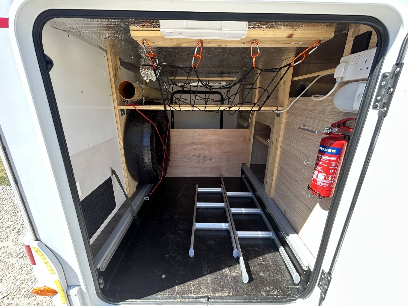 Externally, practicality continues with a large rear garage, offering substantial storage space—ideal for bikes, outdoor furniture, or adventure gear. The motorhome is also fitted with two Gaslow refillable bottles, providing a cost-effective and convenient gas solution across the UK and Europe.