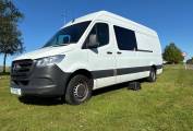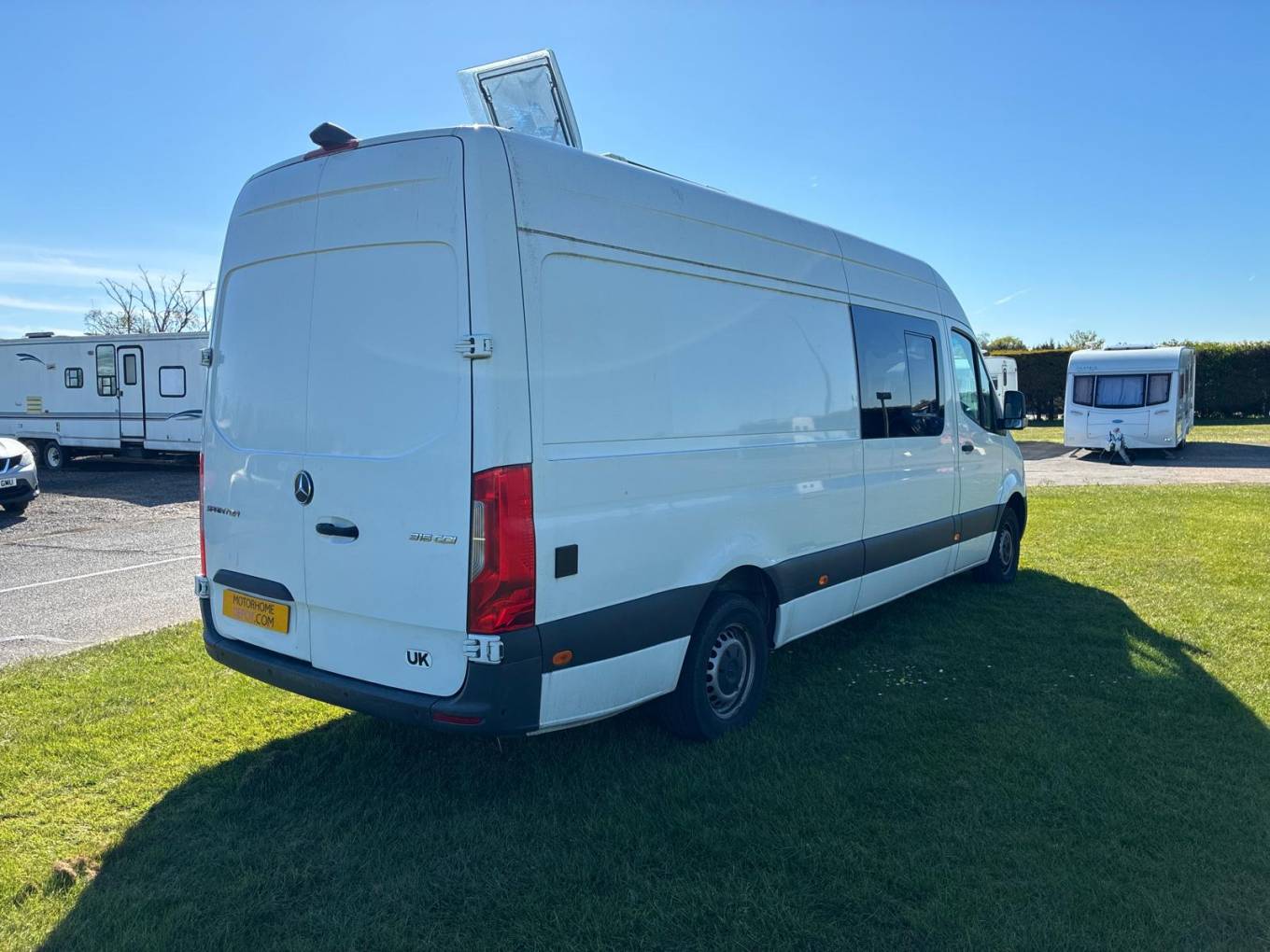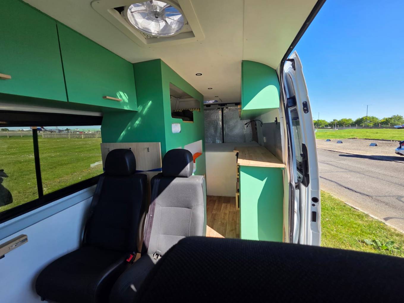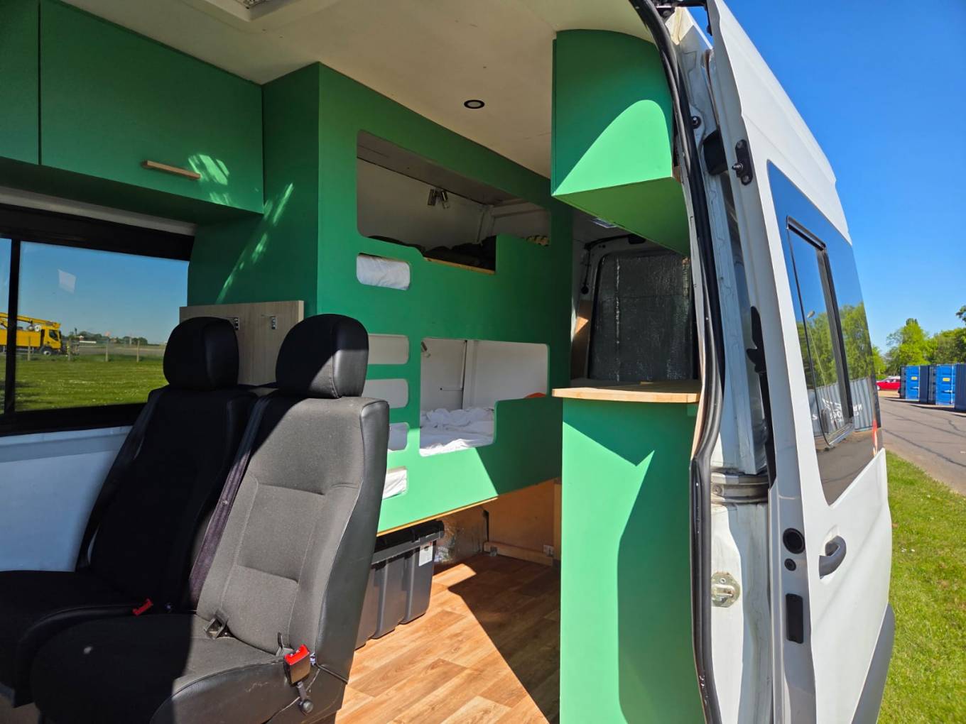 MOTORHOME DEPOT RICHMOND -UPON-THAMES are pleased to bring you this 2021 Mercedes Benz Sprinter | which has been self-converted by the current owner | finishing touches yet to be completed by current owner | vibrant green hand painted interior | 6 speed manual | 37,079 miles on the clock | Victron electric system | solar panel | OFF GRID READY | 4 berth - 1 x fixed double bed along with 2 x bunk beds RARE | suitable for young children | 4 x seatbelts - 2 x iso-fix for car seats | reversing camera | centre dinette area with removable dining table | 2 x swivel captain seats | fridge/freezer | 240v & 12v | plenty of storage cupboards including under bed storage