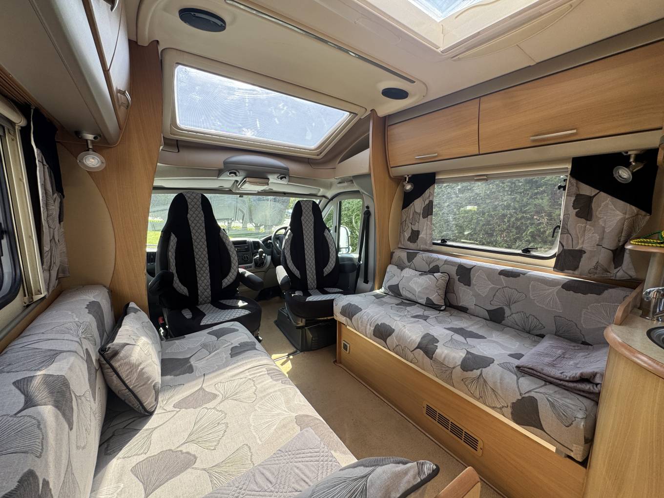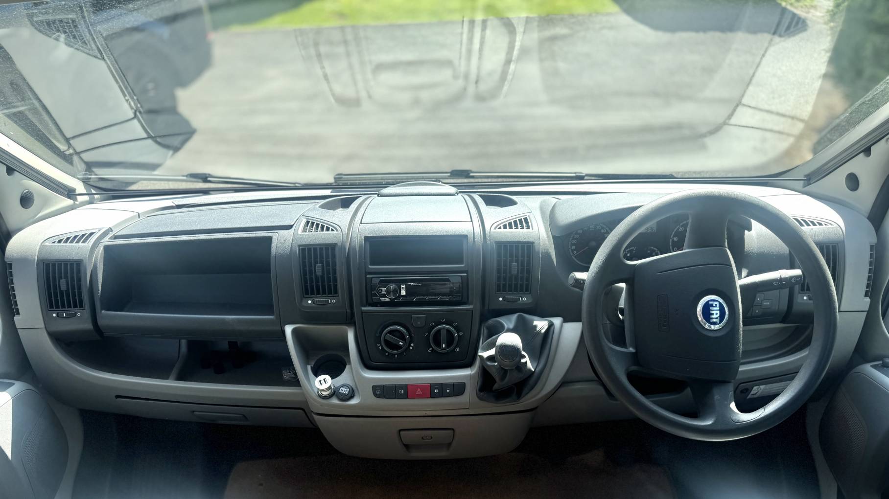 Built on the Fiat Ducato chassis with a manual gearbox and a 3500kg gross vehicle weight, this motorhome can be driven on a standard UK driving licence. Externally, it presents well and benefits from a wind-out awning, reversing camera, and useful storage.