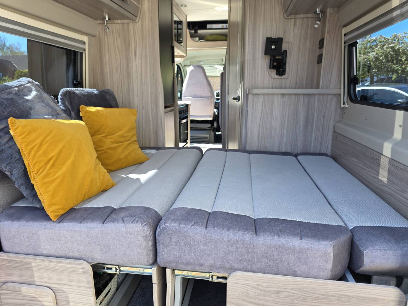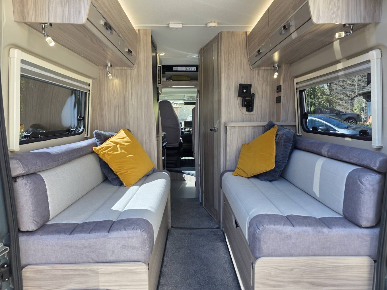As you enter the vehicle it feels bright, spacious and well designed, with clever storage solutions and good lighting enhanced by a skylight above the front living area.