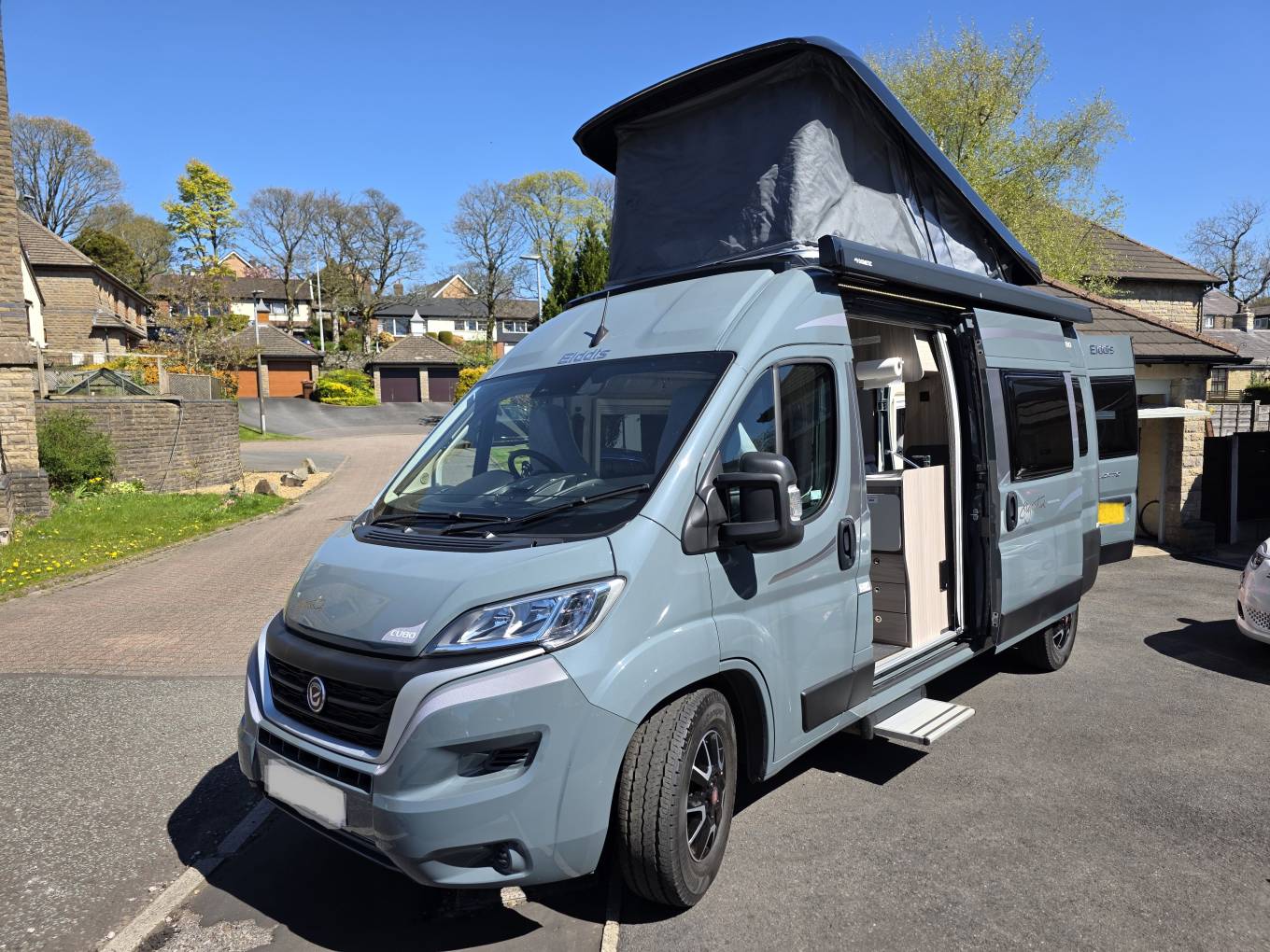 At just under 6 metres in length it is compact enough to fit on most driveways and parking bays and can be driven on a standard driving licence, but has two double beds and 4 belted seats.