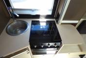 Internally we'll start at the rear with full width washroom with self contained shower unit, sink, vanity unit and thetford w.c. Rear mirrored doors open to provide a large wardrobe space Moving forward we have a kitchen with adequate preparation space, gas hob and sink over an oven and combined grill. Opposite this kitchen area is the large fridge with separate freezer. In the locker above is the 15" TV attached to a multi directional stand and benefits from a new aerial and booster pack and an external aerial point.