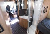 - Full sized separate shower cubicle with large perspex doors on the offside with built-in washbasin & mixer tap, mirror & storage cabinet. On the nearside a Thetford cassette toilet, electric flush. Tall wardrobe & storage cupboard. The toilet door can be used to section off the front of the van.