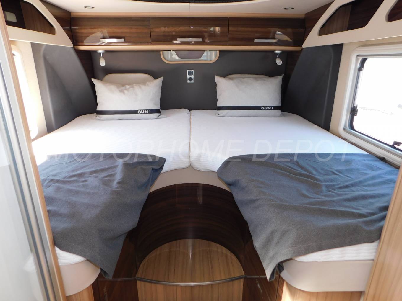 - Main feature is the rear bedroom, luxury fixed bed with easy access. Upper lockers, lighting, 2 windows & Dometic air-con unit.